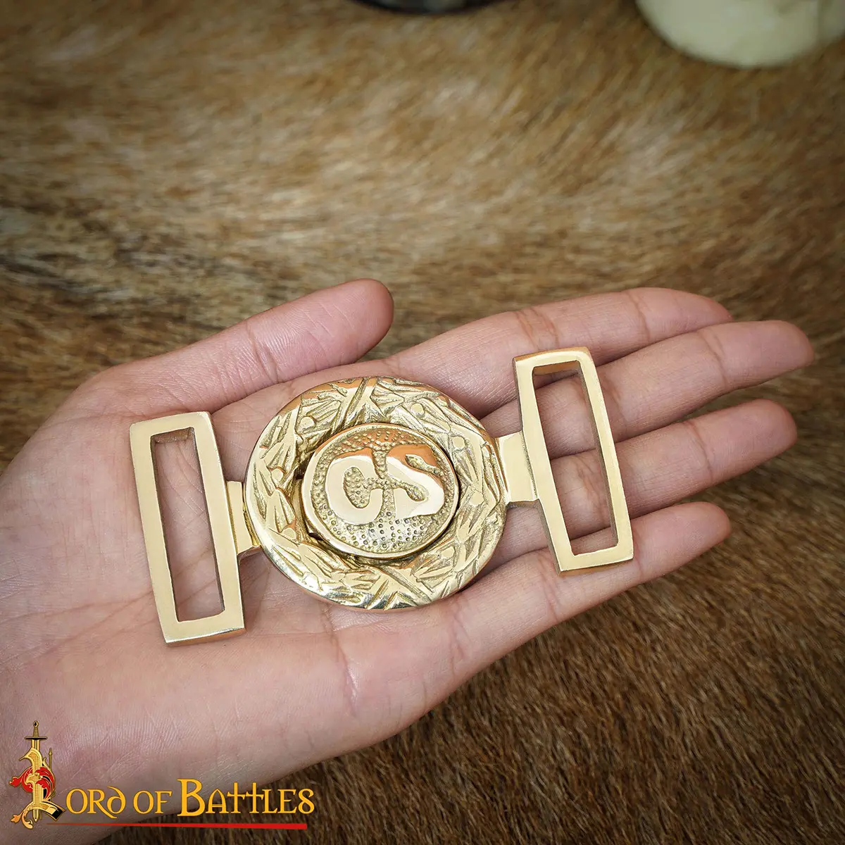 WELL-DESIGNED from PURE SOLID-BRASS it has a simple loop closure that assures to fasten your belt with utter historicity. Its total length is approx. 8.9 cm and is ideal for 4-4.3 cm wide belt straps.