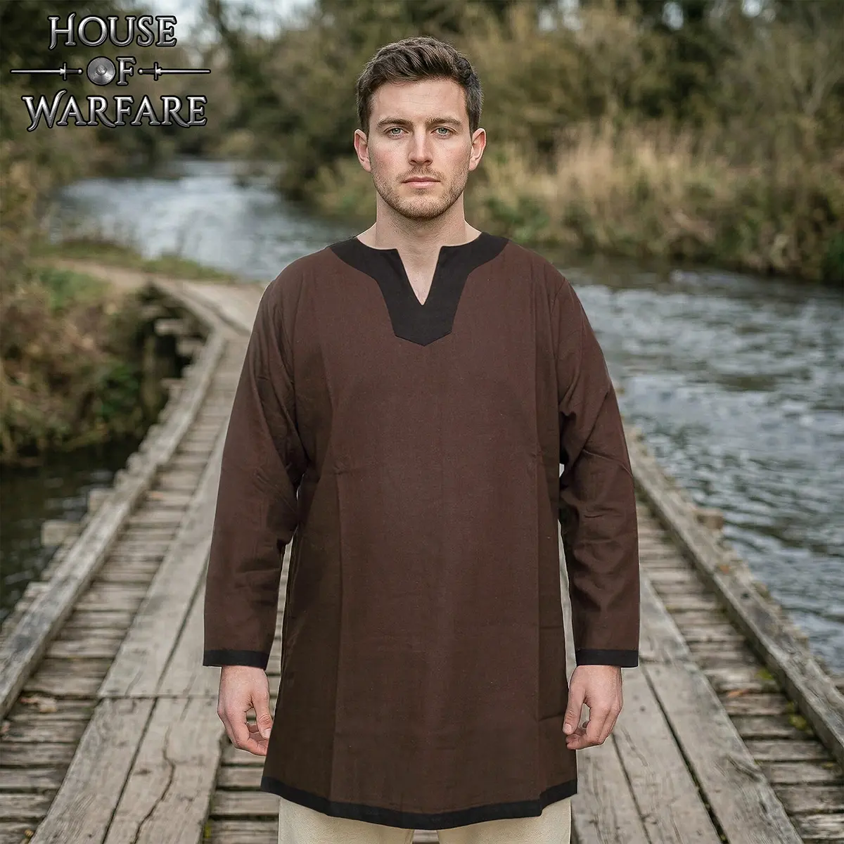 Distinctive Contrast Design: The Contrast Medieval Tunic features a bold V-slit neckline with matching sleeve trim. The detailing adds character.