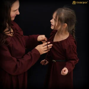 You can style the Maiden Dress in different ways: wear it loose and comfortable for an everyday medieval look, or cinch it with a belt to highlight the waist. Historically, this type of gown was known as a “kirtle” or “cotte”, worn by women across medieval Europe between the 12th and 15th centuries. It served as a versatile layer, worn on its own by peasants and working women, or as an underdress beneath fancier garments by wealthier ladies.