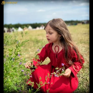 The dress has a straight, flowing cut with full sleeves, a drawstring neckline, and side gores for natural movement. The drawstring neckline gives easy adjustment to suit your fit and style, the gores triangular panels of fabric, create a graceful flare without adding bulk. This design gives freedom of movement, whether you’re walking or participating in medieval field activities.