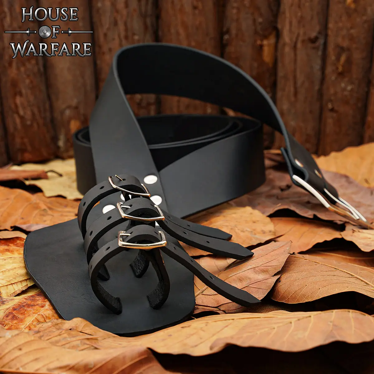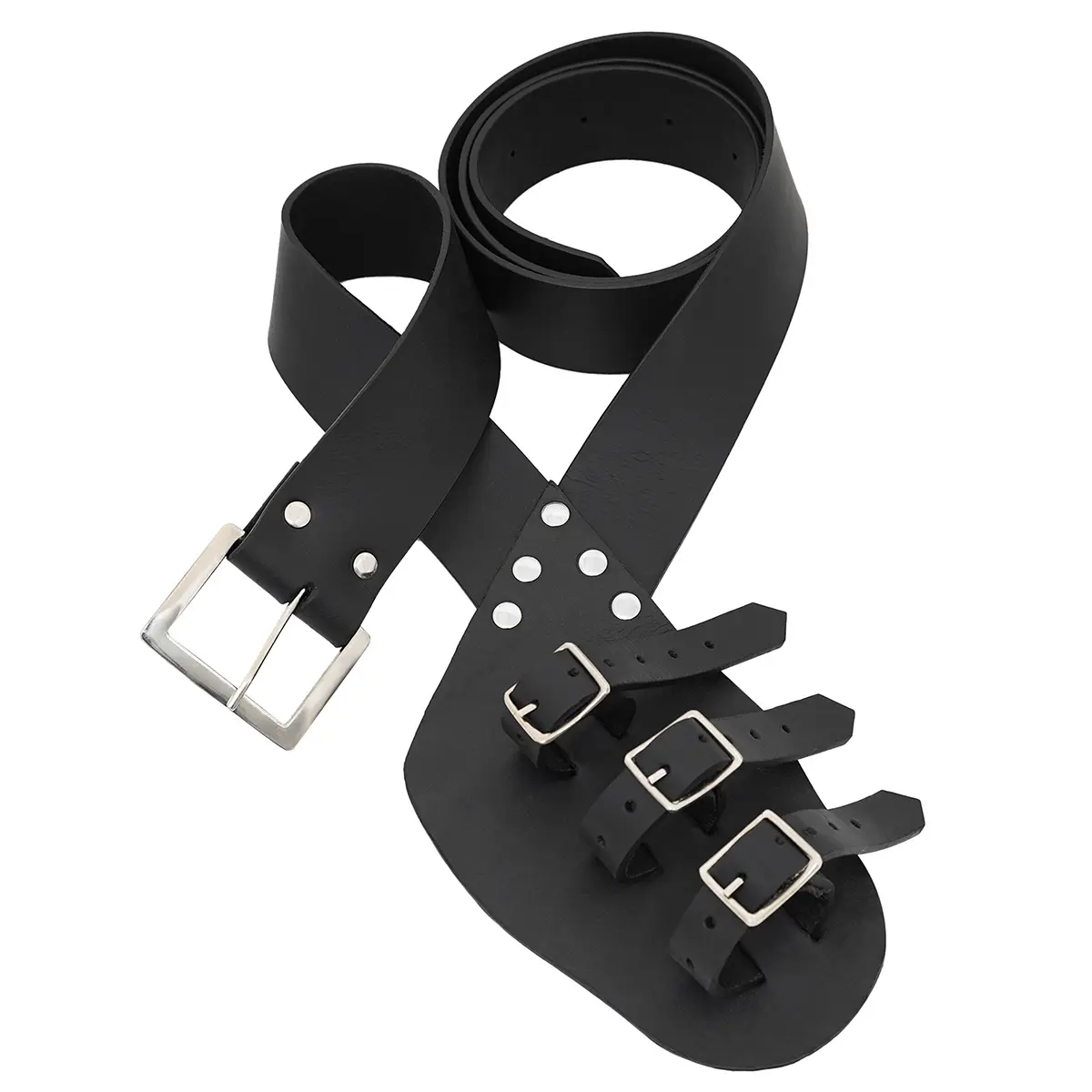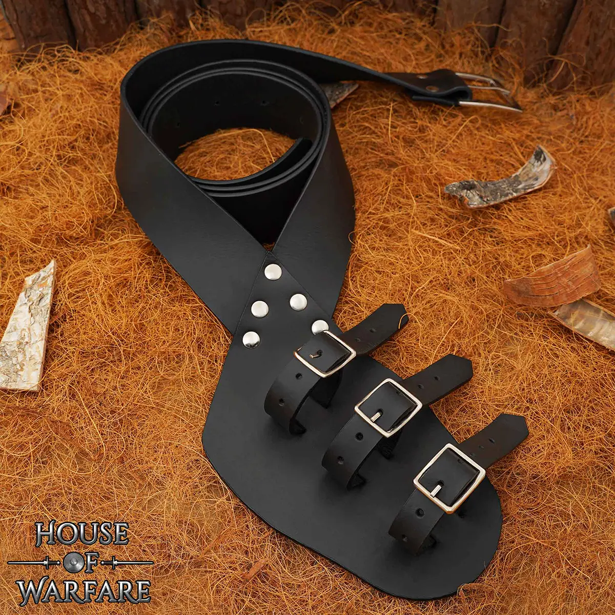 The lower section of this sword baldric has three adjustable leather straps with multiple holes, so that you can tighten or loosen the hold according to your weapon’s thickness and your preference. Whether you are carrying a rapier, broadsword, or fantasy blade, the straps give secure hold. The three polished steel buckles resist rusting and staining, requiring minimal maintenance.