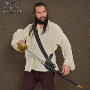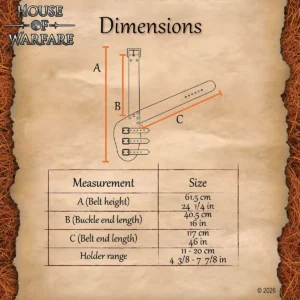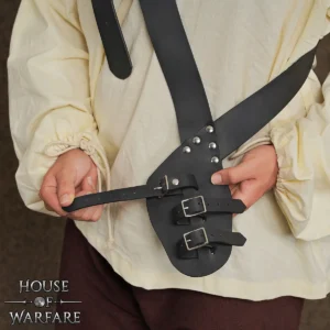 Designed in a traditional baldric style, this sword belt is worn across the body, resting over the shoulder and across the torso. Historically, baldrics were used by warriors and travelers to carry swords comfortably while keeping their hands free. This cross-body carry gave quick access and smooth drawing of weapons, especially when on horse or moving through crowded battlefields. The sword holster is even practical today for LARP events, renaissance fairs, and theatrical performances.