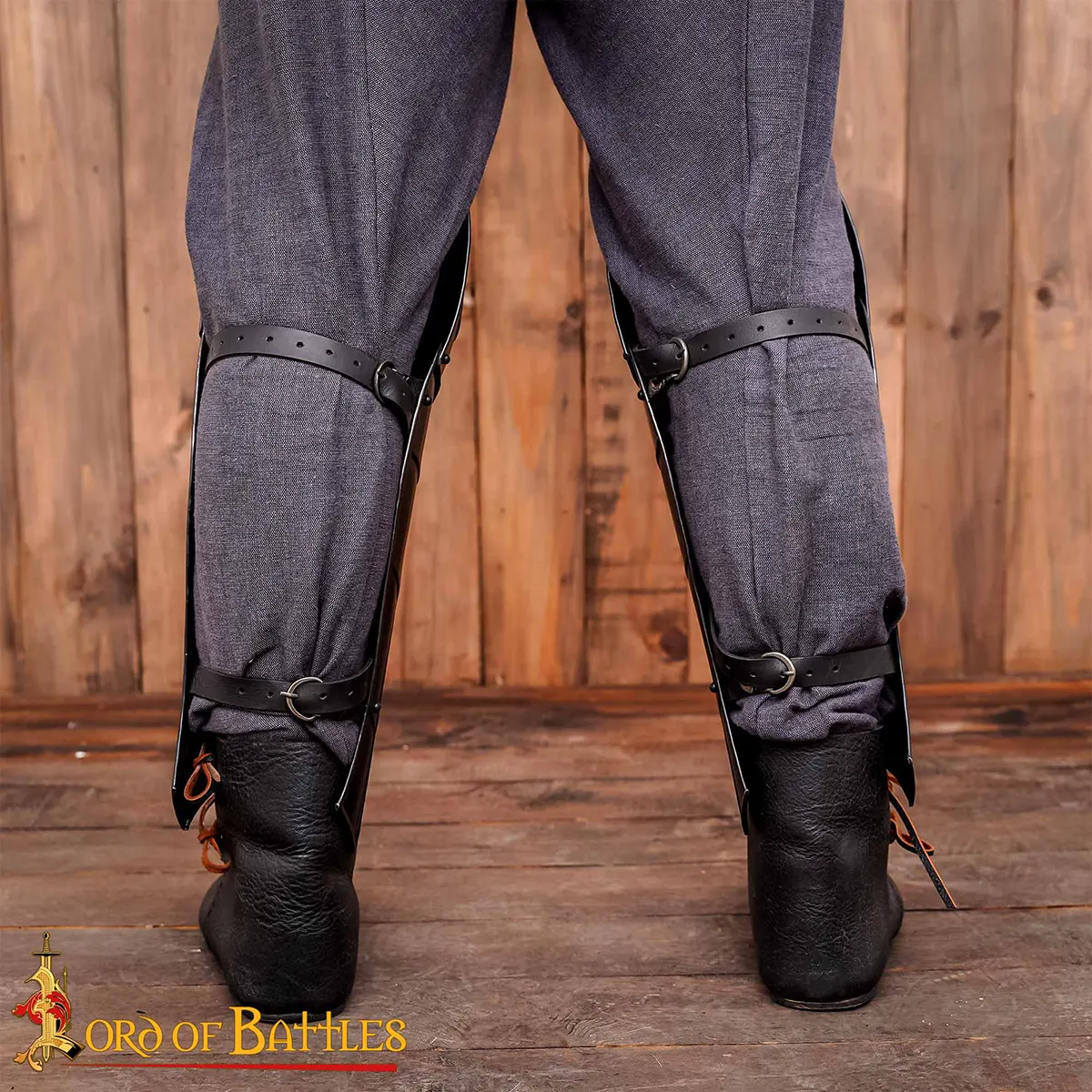 The battle is about to start. Your squadron is called to the front, and as you calmly take your place in the first line, you instinctively clutch your deadly blade. Firmly affixed to your shins are your classic black knight greaves, and you know that when the time to charge will come, they won’t slow you down as you close in with your poor opponents!
