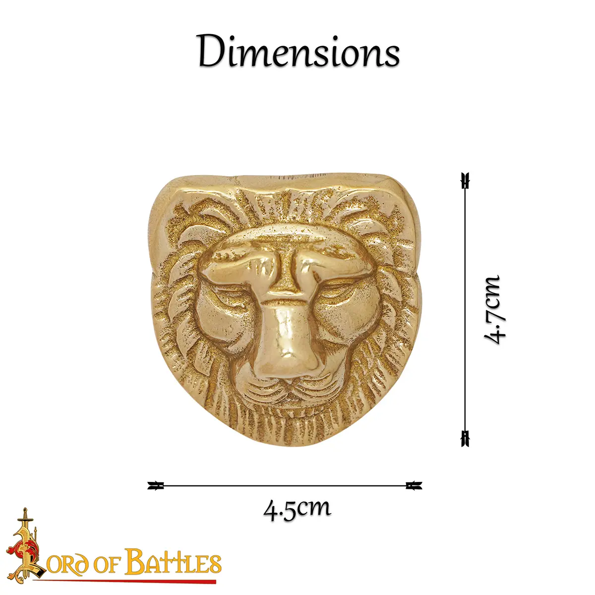 This is the Decoration lion head, crafted from solid brass and polished to a rich gold finish. Measuring approx 4.7 cm in length and 4.5 cm in width, this piece has a finely detailed face carving that gives it a bold presence. The brass material is known for its strength, making this Decoration lion a long-lasting decorative item that resists wear.