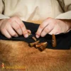 The ox horn toggles are strong enough for daily use and have very little weight. Their natural finish makes them ideal as brown horn toggles for historical clothing, LARP gear, coats or cloaks.