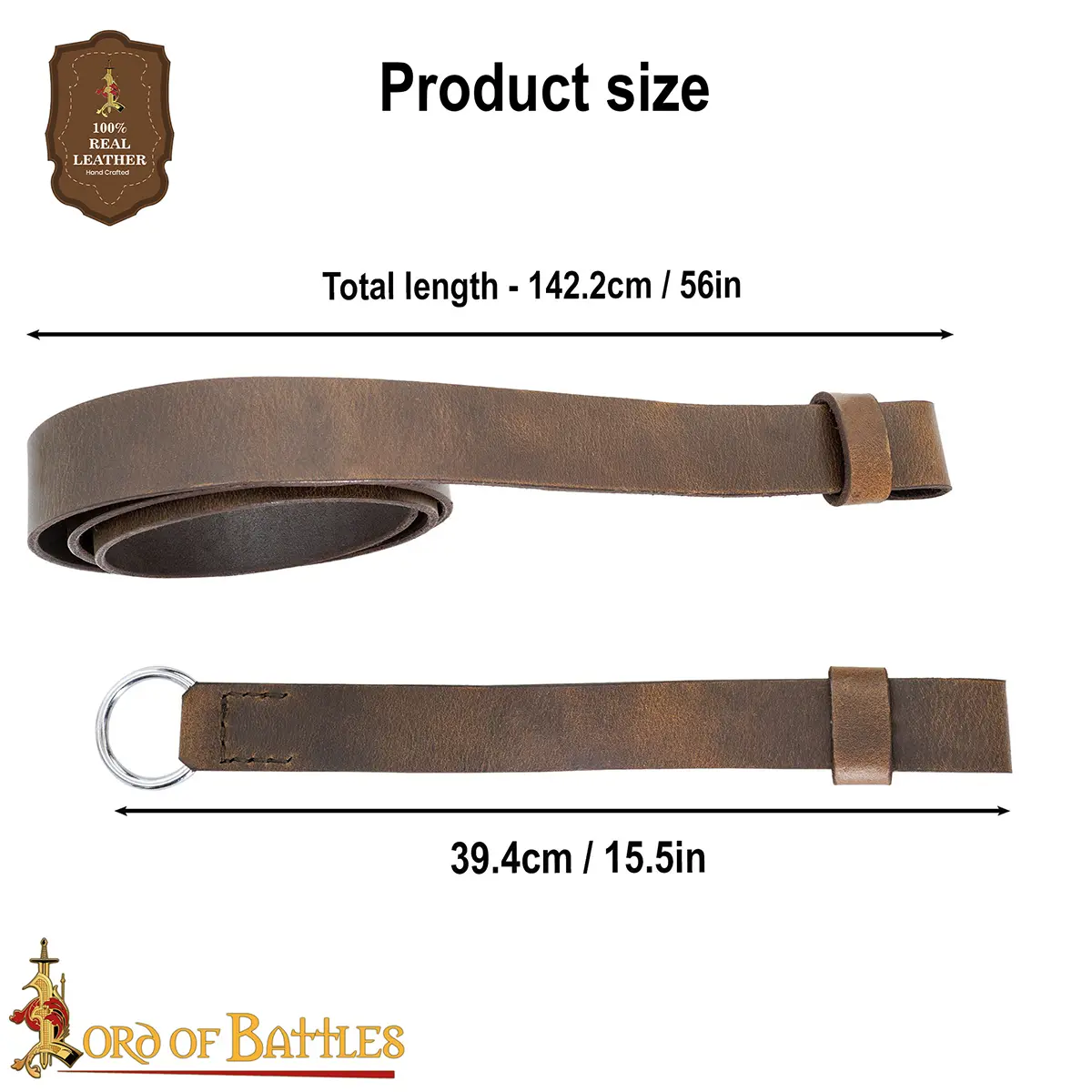 HANDCRAFTED from ETHICALLY SOURCED LEATHER (3-3.3 mm thickness), it shall show no signs of wrinkles in the nearest time. The longer belt measure approx. 56 inches and its shorter counterpart measures approx. 15.5 inches. For added lustre, the mild steel ring has been coated with nickel. It is drum dyed for two main reasons: first, it infuses the colour rigorously into the leather, and second, it provides a rich matte finish. NOTE: Since this is authentic buff leather, make sure to keep it away from moisture; clean it regularly with linen (or any soft cloth); if the stain pertains, damp cloth and some lather out of mild soap will do the needful.