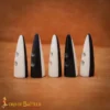 Handmade from ETHICALLY SOURCED OX HORN, they come with a hole on the wider end for attaching it to your clothes or even a bag (or pouch) flap. Each has an approximate length of approx. 2 inches and come in a set of five pieces.