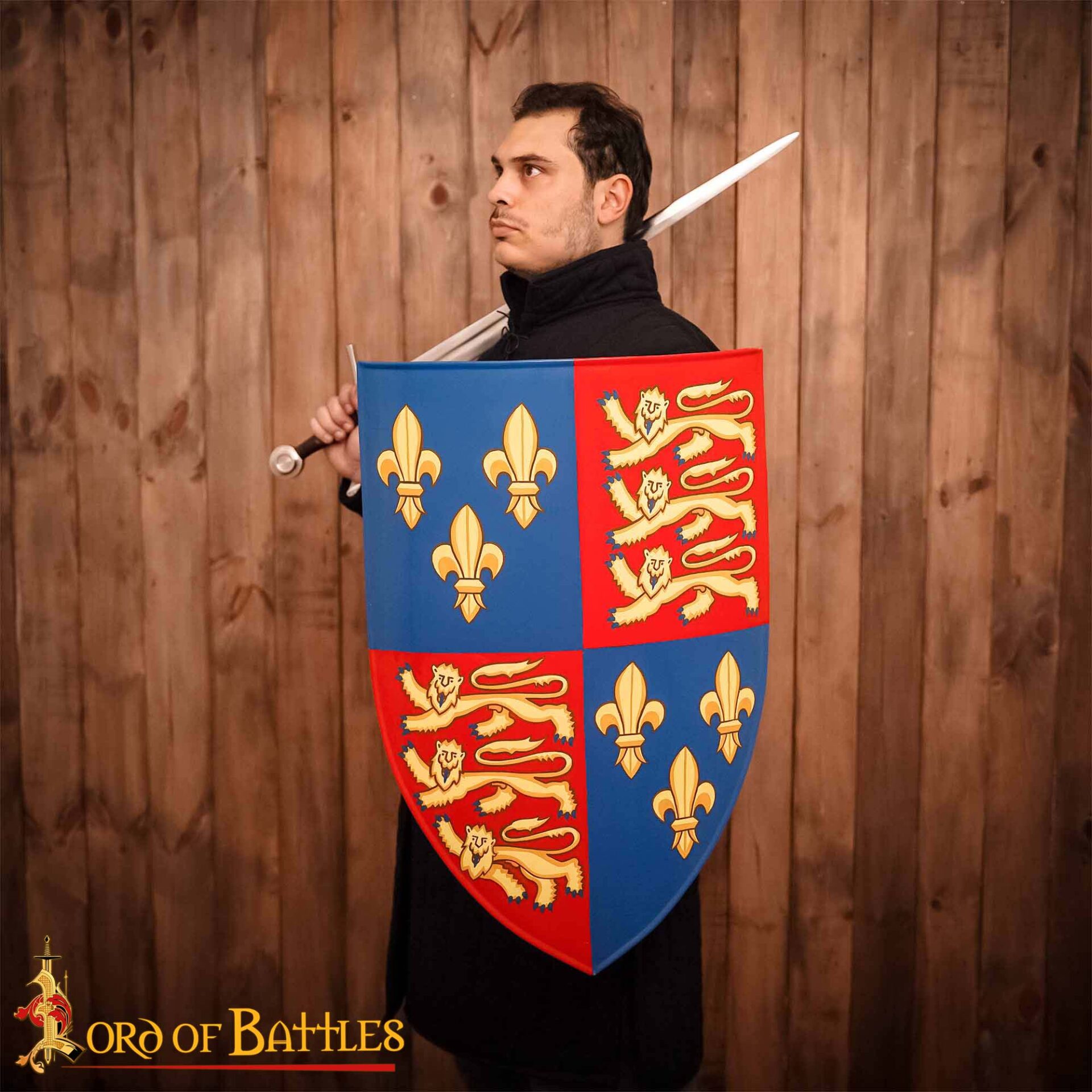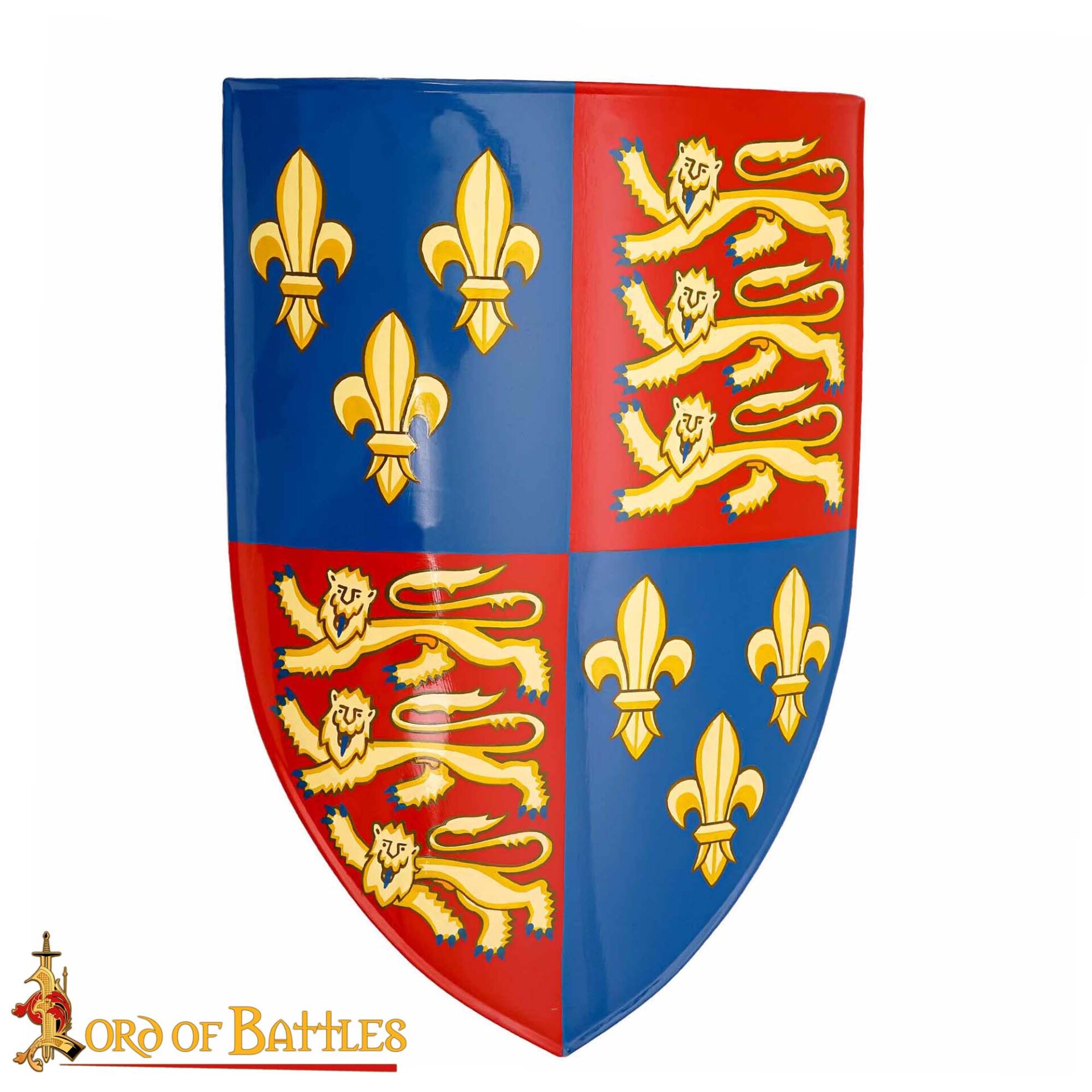 Bring medieval nobility to life with this stunning, inspired by the classic arms associated with English royalty during the late Middle Ages. Crafted from sturdy 18-gauge steel it is ideal for collectors, performers, and medieval décor.