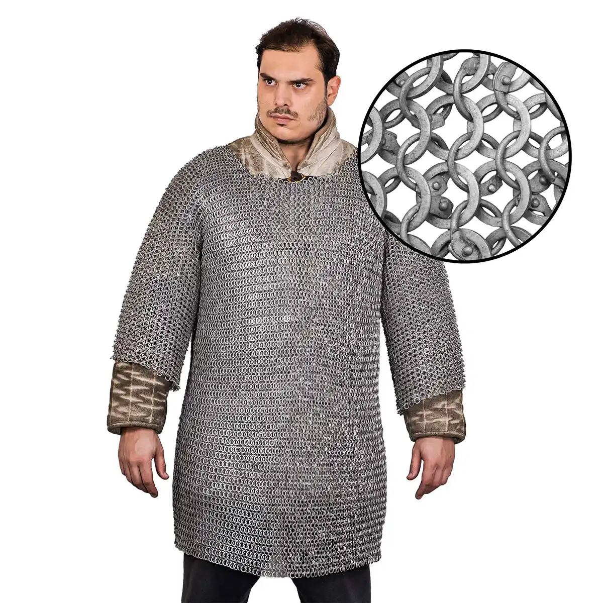 Because each piece is assembled entirely by hand using authentic methods, you may occasionally notice a rivet that sits slightly proud or feels subtly looser than others. These minor variations are a natural hallmark of genuine, artisan-made mail, just as they were in the Middle Ages and show the human care invested in every garment. Should adjustment ever be needed, it can be easily done using basic pliers and a spare ring, preserving both integrity and historical authenticity.
