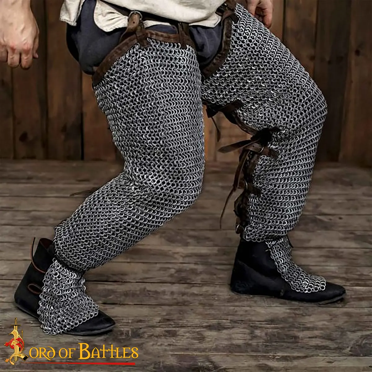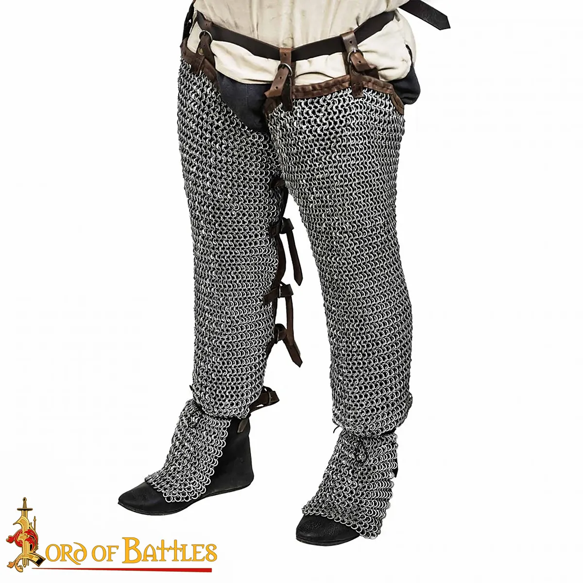 These mail chausses/hoses are directly inspired by the type of protection worn by the knights and some sergeants in the 12th and 13th centuries. They appear for the first time on William ‘The Conquerer’ on the Bayeux Tapestry in 1066. By that time it was a luxury and that’s not a hazard if only Duke William himself was wearing those chainmail hoses and so many of the other Norman knights were not. By the opening of the 12 and 13 centuries, it was becoming standard equipment of a medieval knight perfectly completing the long sleeves, and length hauberk making the knight almost invulnerable.