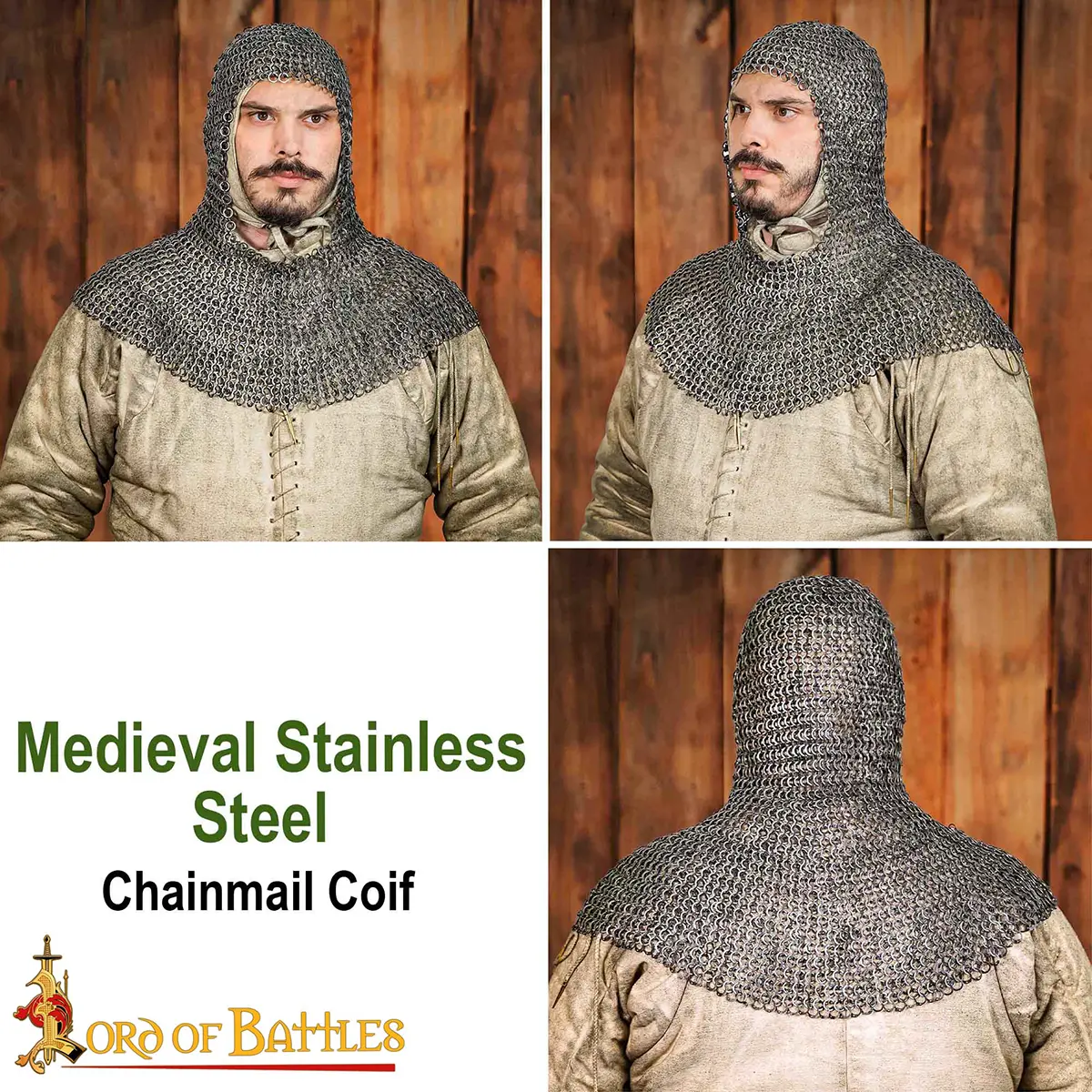 Chainmail Coif – 9mm Riveted Flat Ring, Stainless Steel – Ideal for LARP, Cosplay & Film Costumes