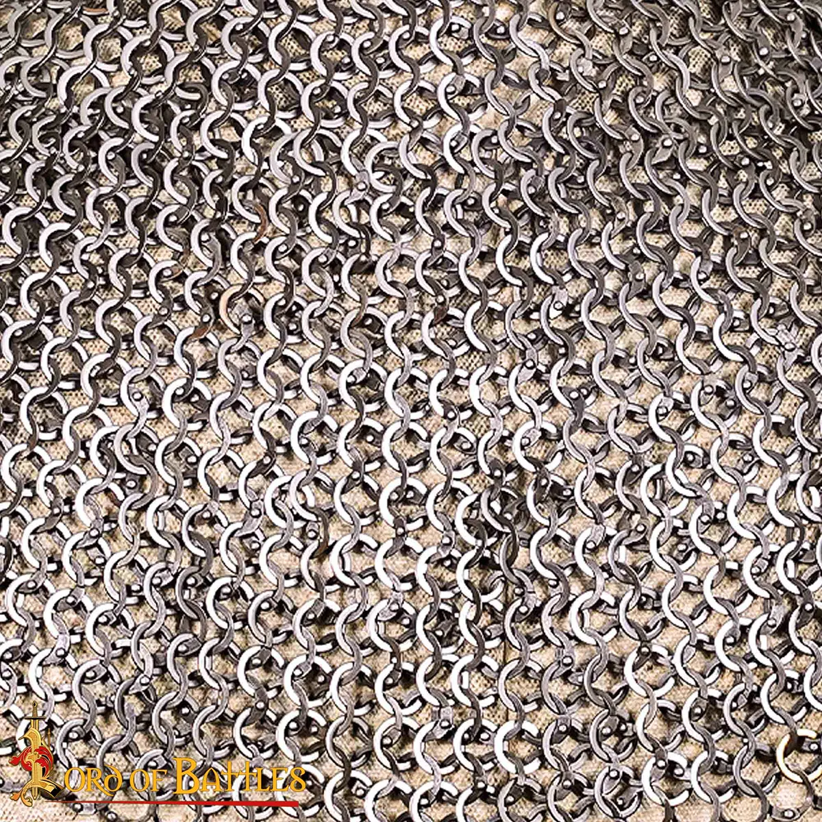 This coif is intricately HANDMADE from 18 gauge STAINLESS STEEL rings with a diameter of approx. 9 mm each, riveted using DOME RIVETS. For increased strength, the rings alternate with SOLID FLAT RINGS. It comes in a single size that fits most.