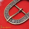 Each buckle is made from sturdy brass, then finished with an antique patina that shows the engraved floral artwork. The engraved motifs of the medieval belt buckles give depth and character which make any outfit stand out. The oval shape and solid prong make these buckles both visually striking and reliable for regular use.