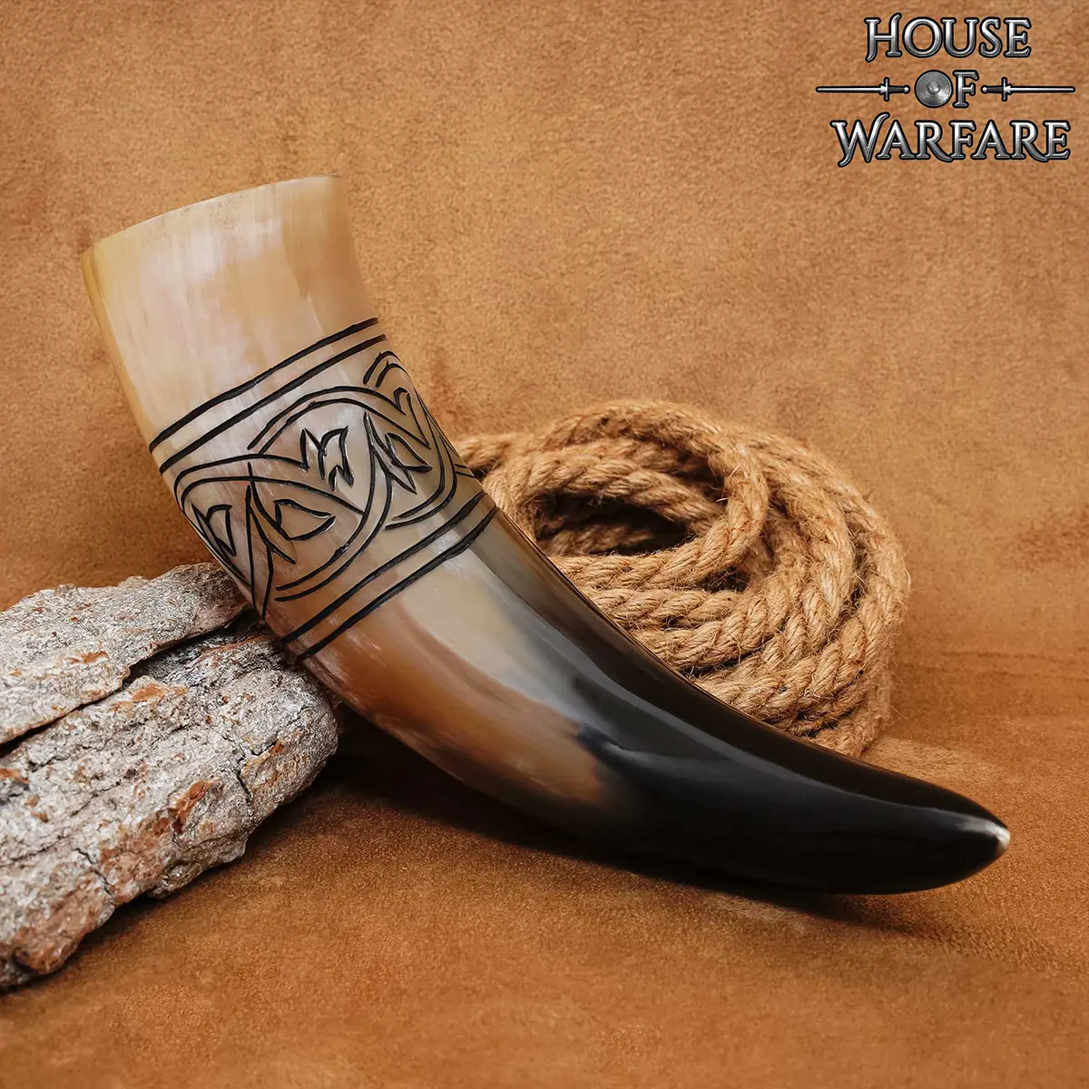 Drinking horns have been used for centuries across Viking and medieval cultures during feasts, celebrations, and storytelling gatherings. Warriors, nobles, and travelers would raise their horns in halls and taverns while sharing tales of adventure. This Floral Knotwork Drinking Horn has that same spirit, making it perfect for LARP events, and historical displays.