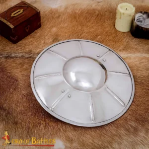 Since it is made from 16-gauge steel, this shield buckler gives you protection with a manageable weight. The thickness gives reliable resistance as is even light enough for long use.The round shape and fluting of this round buckler shield give it more strength, therefore it is suitable for close combat, training, LARP and stage use and in some cases even for display.