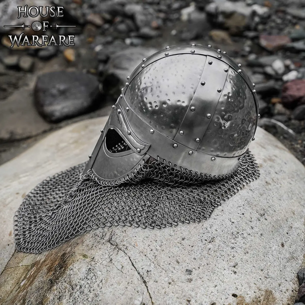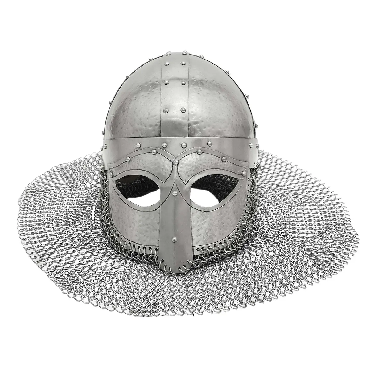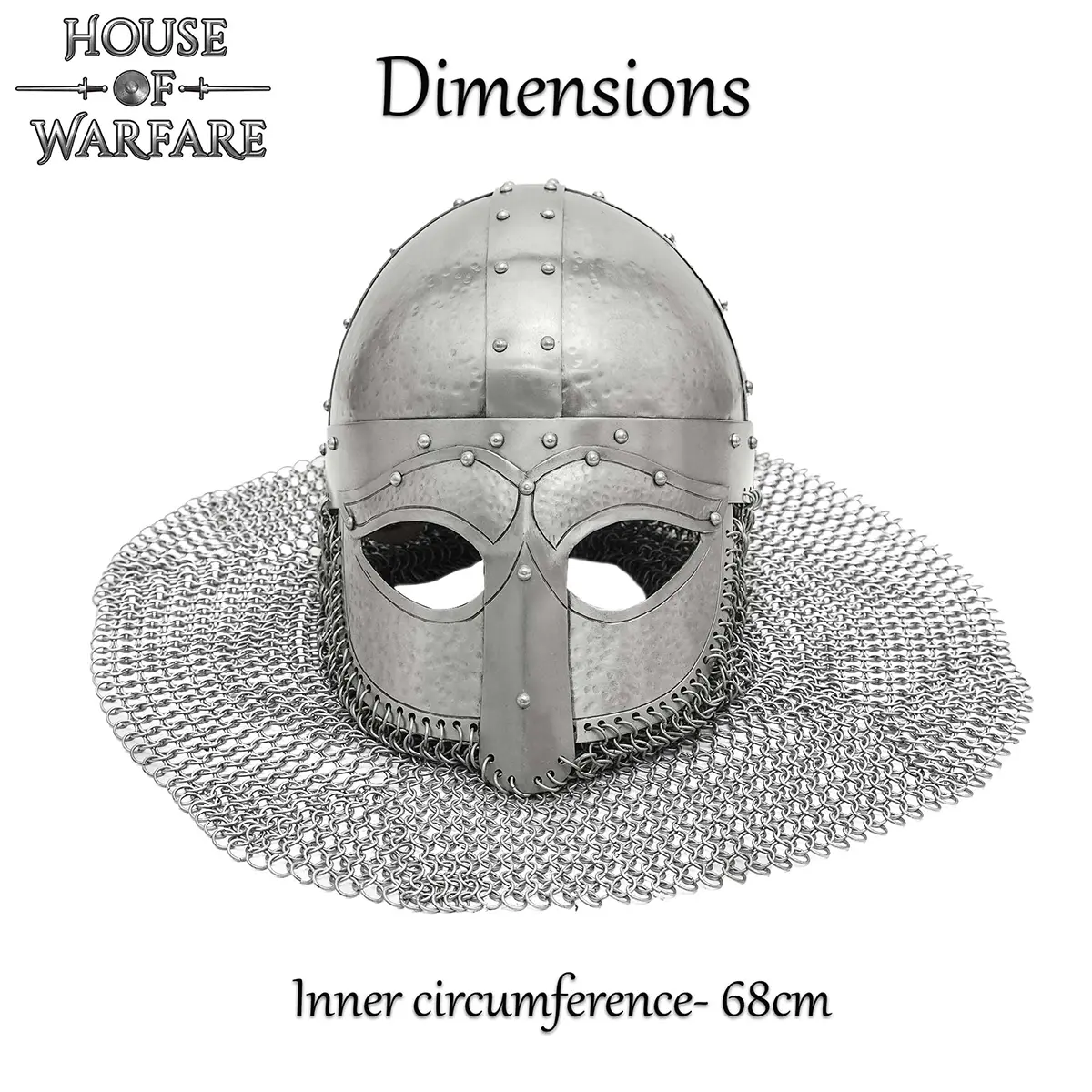 The Viking Spectacle Helmet, meticulously forged with 16 gauge mild steel, stands as a testament to the craftsmanship of ancient warriors. Inspired by the historical Valsgarde 8 helmet excavated in Upland, Sweden, this remarkable piece captures the essence of Viking culture. Enveloped in a war-worn finish, it offers not just protection, but a connection to the authenticity that modern enthusiasts crave. Ever wonder how the Vikings protected themselves while engaging in fierce battles or during a vivid reenactment of their storied past? This helmet, emulating the notable Gjermundbu design discovered near Haugsbyd, Norway, combines both function and aesthetics, making it the ideal choice for costume lovers and reenactors alike. With a helmet inner circumference of 70 cm and a height of 17 cm, the Viking Spectacle Helmet ensures a comfortable fit for all. Its broad face design measures 15.8×27.5 cm, providing ample coverage while allowing for visibility and movement. The thoughtfully designed base measures 24×22.5 cm and features an eye space of 7.8×4 cm, bridging practicality with robust design. Weighing 4 Kg 690 grams, this helmet balances durability with wearability, ensuring that enthusiasts can don it for extended periods without discomfort. Every Viking Spectacle Helmet includes an aventail made from butted 9 mm rings of 16 gauge mild steel wire, further enhancing the historical accuracy and defensive capabilities of the piece. As you embark on your own journeys into the past, whether engaging in dramatic reenactments or simply showcasing your love for Norse culture, this helmet serves as your reliable companion. As part of our commitment to quality and durability, each helmet is coated with a thin layer of oil to prevent corrosion during storage. We encourage you to wipe this off before use to maintain the pristine condition. Our Viking Spectacle Helmet doesn’t just serve a functional role; it embodies a story—a connection to a time when valor and adventure ruled the horizon. As you wear this helmet, feel the weight of history on your shoulders, and transform your appearance into that of a fearless warrior. Make your adventures unforgettable, and let the Viking Spirit guide you to new horizons!