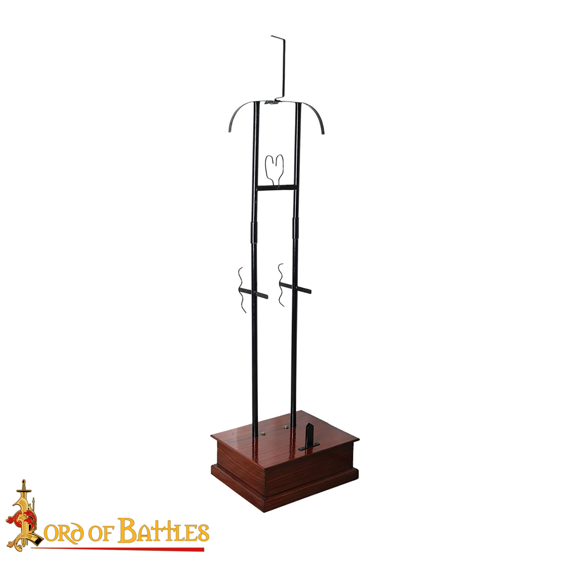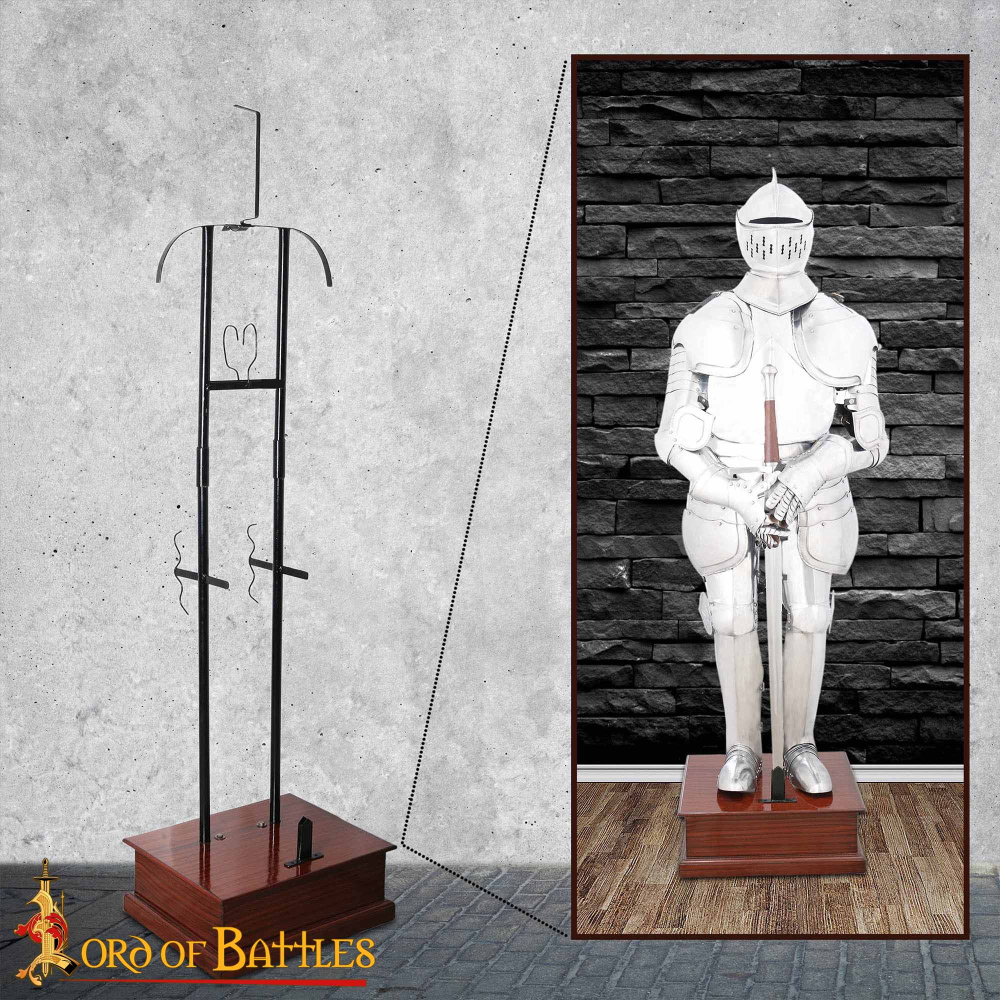 The thoughtful design balances period-appropriate aesthetics with modern practicality, keeping your armour secure and accessible for display or maintenance.