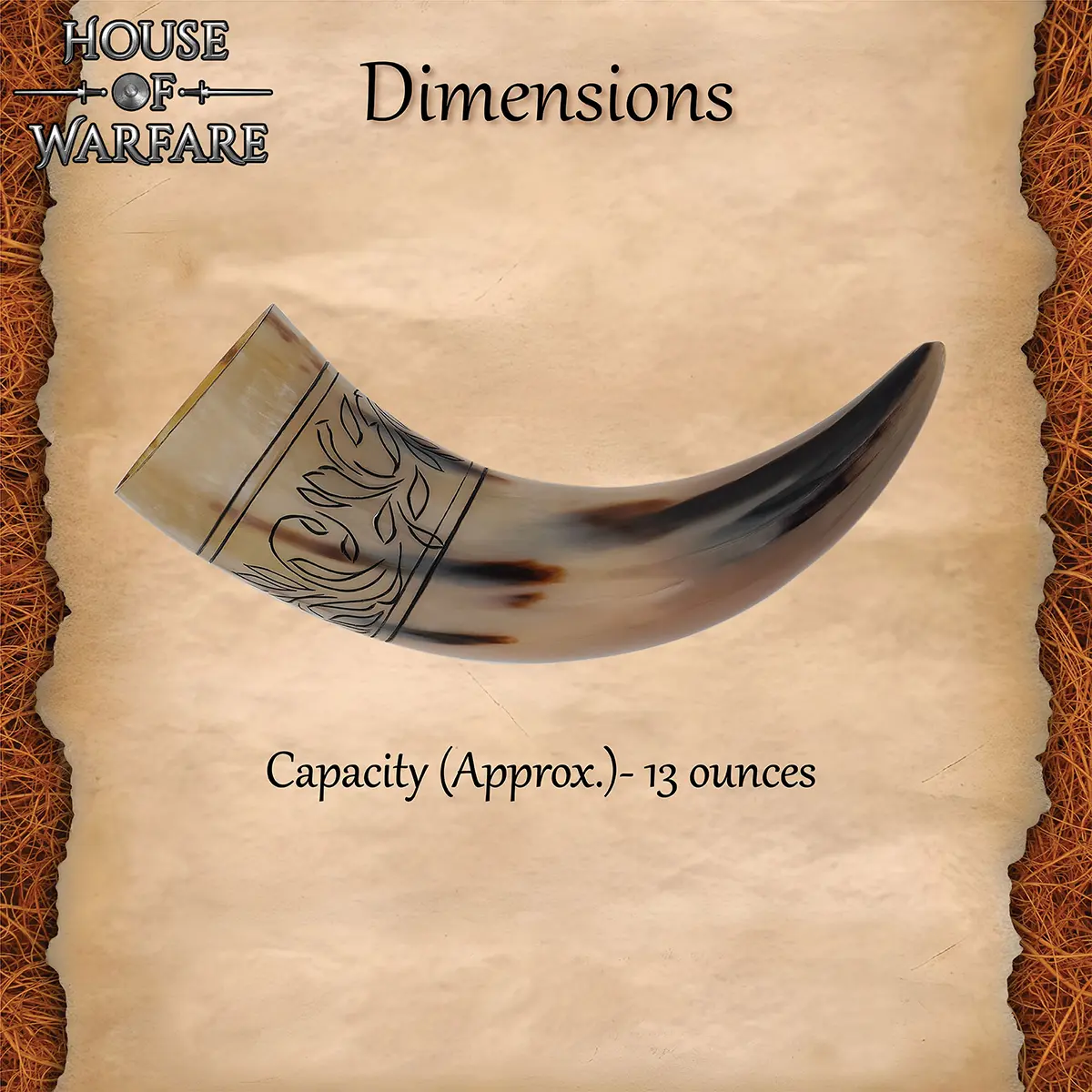 Immerse yourself in the rich history and craftsmanship of our genuine drinking horn, designed with stunning floral engravings that capture the essence of artistry and function. Each drinking horn is meticulously hand-crafted, celebrating the traditional methods used by ancient cultures. When you hold this exquisite piece, you are not merely drinking; you are experiencing a time-honored tradition that combines beauty and practicality. Picture this: you’ve gathered with friends around a cozy fire, laughter echoing in the air. You pour mead or ale into your genuine drinking horn, its intricate floral design catching the flickering light, sparking conversations about history and adventure. This moment transcends mere refreshment; it becomes a cherished memory, amplified by the unique character of the drinking horn. Our genuine drinking horn is perfect for a variety of occasions, whether you are hosting a feast, partaking in a medieval-themed party, or simply enjoying a quiet night at home. It serves as a remarkable conversation starter, catching the eye of anyone who sees it. Its ergonomic design makes it easy to hold, while its natural material ensures that every sip remains true to the original flavor of your beverage. In addition to its aesthetic appeal, for those who appreciate craftsmanship and unique items, this drinking horn can also be engraved with names or dates, making it an ideal gift for weddings, anniversaries, or personal milestones. By opting for our genuine drinking horn, you are choosing a product that is not only functional but also steeped in history, linking you to a legacy of craftsmanship that has endured for centuries. It’s more than just a drinking vessel; it’s a symbol of celebration and joy to be shared with loved ones. So why settle for ordinary when you can indulge in authenticity? Elevate your drinking experience with our genuine drinking horn and make every occasion memorable! Experience the blend of art and utility in your drinking ritual – order now and be part of a grand tradition!