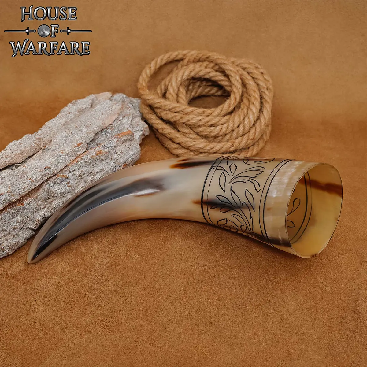 The genuine drinking horn with floral engraving is not just a mug; it’s a statement piece that elevates your drinking experience for any occasion.