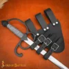 This Sword Frog is handcrafted from genuine leather of thickness of about 3-3.2 mm, which gives it excellent strength and shape retaining quality even after repeated use at the events. In Medieval times, people used thick leather because it increased the longevity of the product, did not stretch easily, and could securely hold weapons without loosely hanging. Â