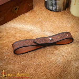 Elevate your drinking rituals with the Genuine Leather Tankard Strap featuring Celtic Knotwork, a perfect fusion of artistry, tradition, and functionality. Whether at a Renaissance fair, medieval themes, or simply relaxing at home, this handcrafted strap enhances both the look and feel of your tankard.