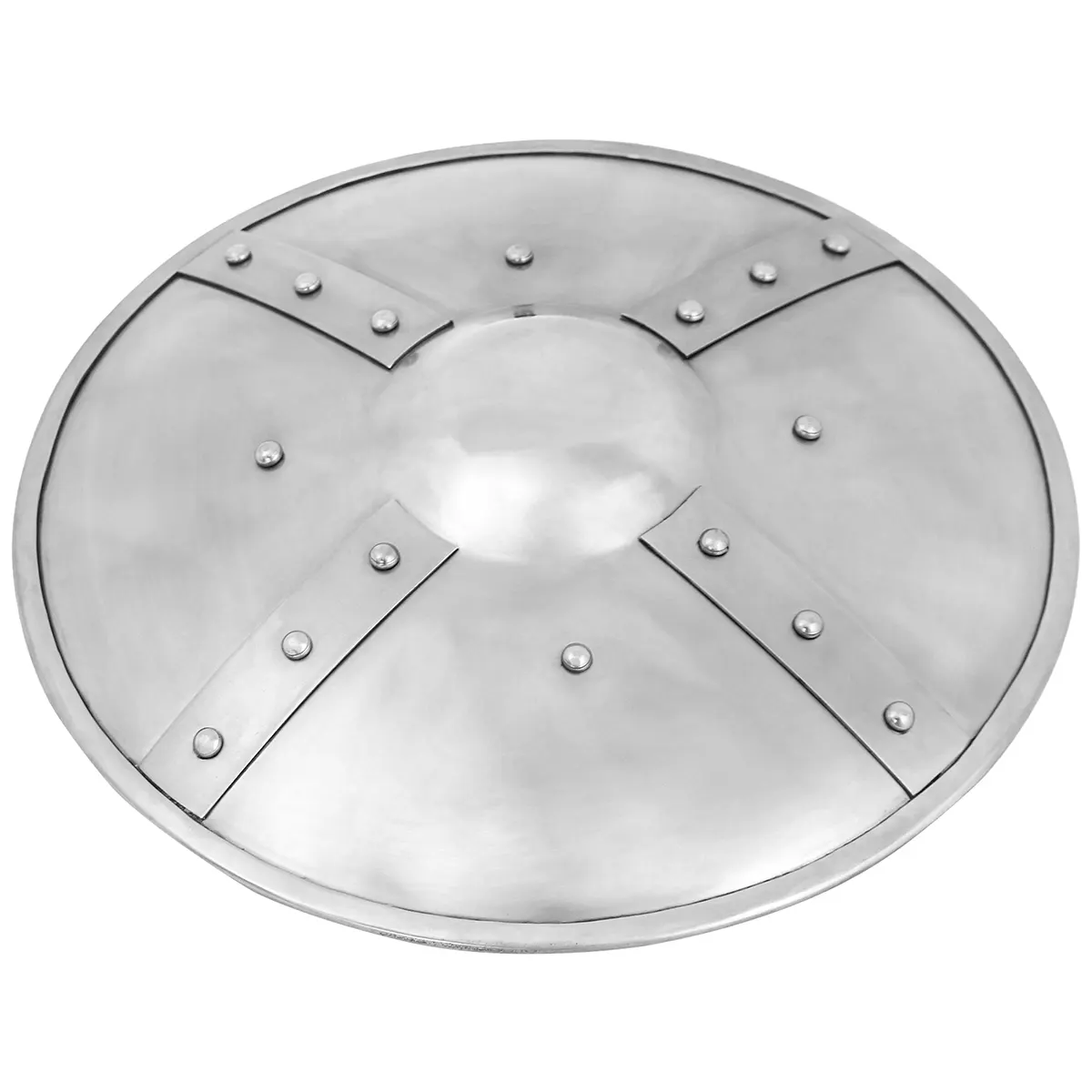 The rim of the Germanic Shield Boss includes four evenly spaced mounting holes, so that it can be securely attached to a wooden shield. This makes it an excellent choice for DIY shield projects, historical reproductions, and shield restorations.