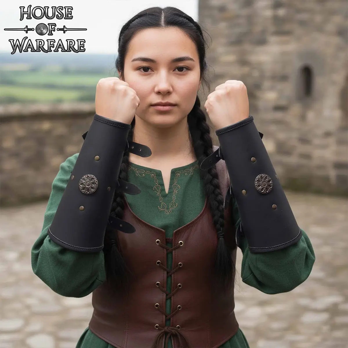 Historically inspired and practically designed, these medieval leather bracers are ideal for LARP, stage performances, and themed events.