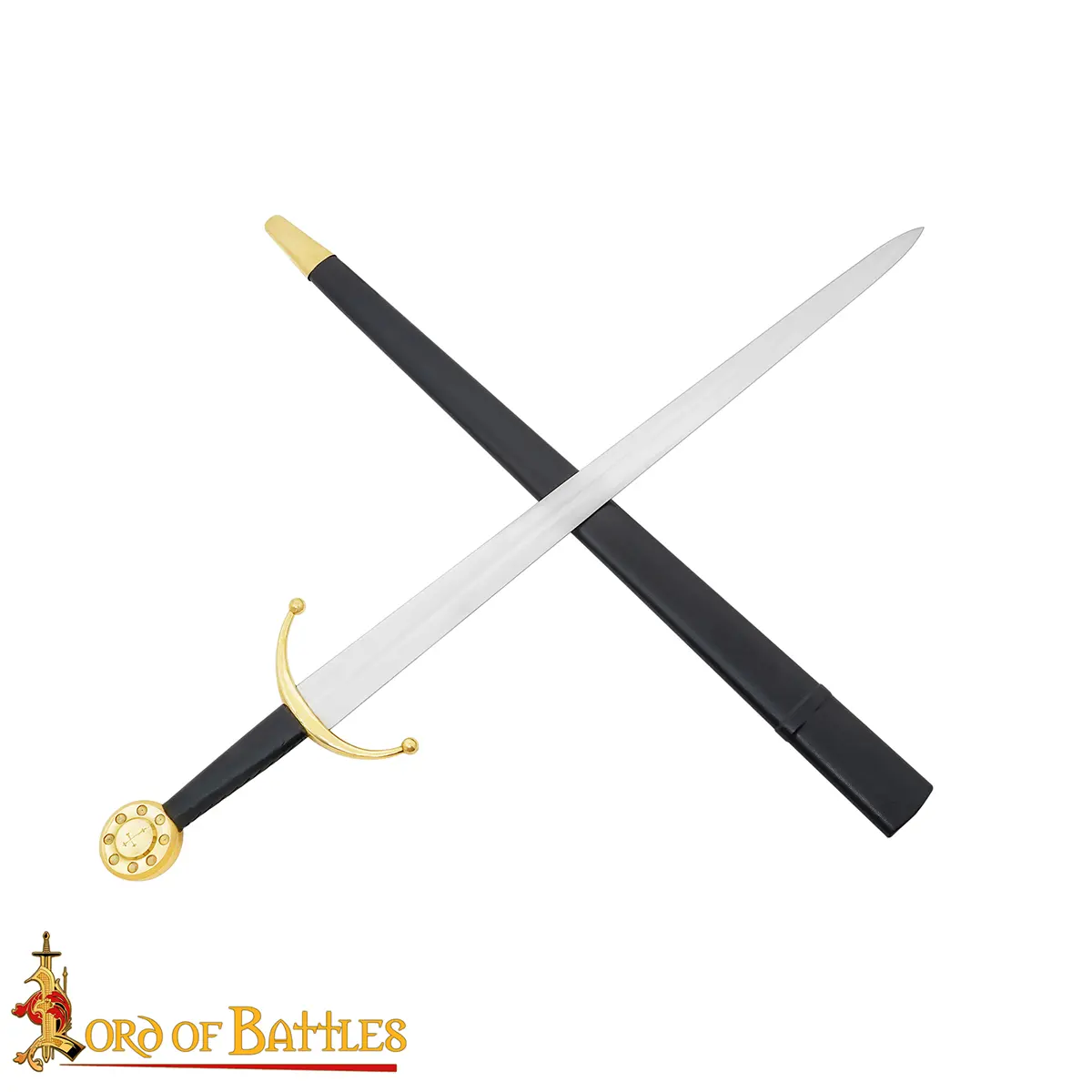 This traditionally hand forged Edward III Medieval Sword is a tribute to the battlefields of 14th-century England, where blades like these were wielded by knights loyal to Edward III during the Hundred Years’ War. The sword’s design balances historical authenticity with practical usability for display and stage performers.
