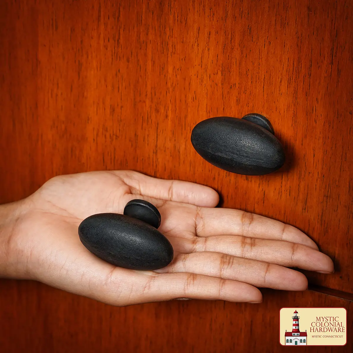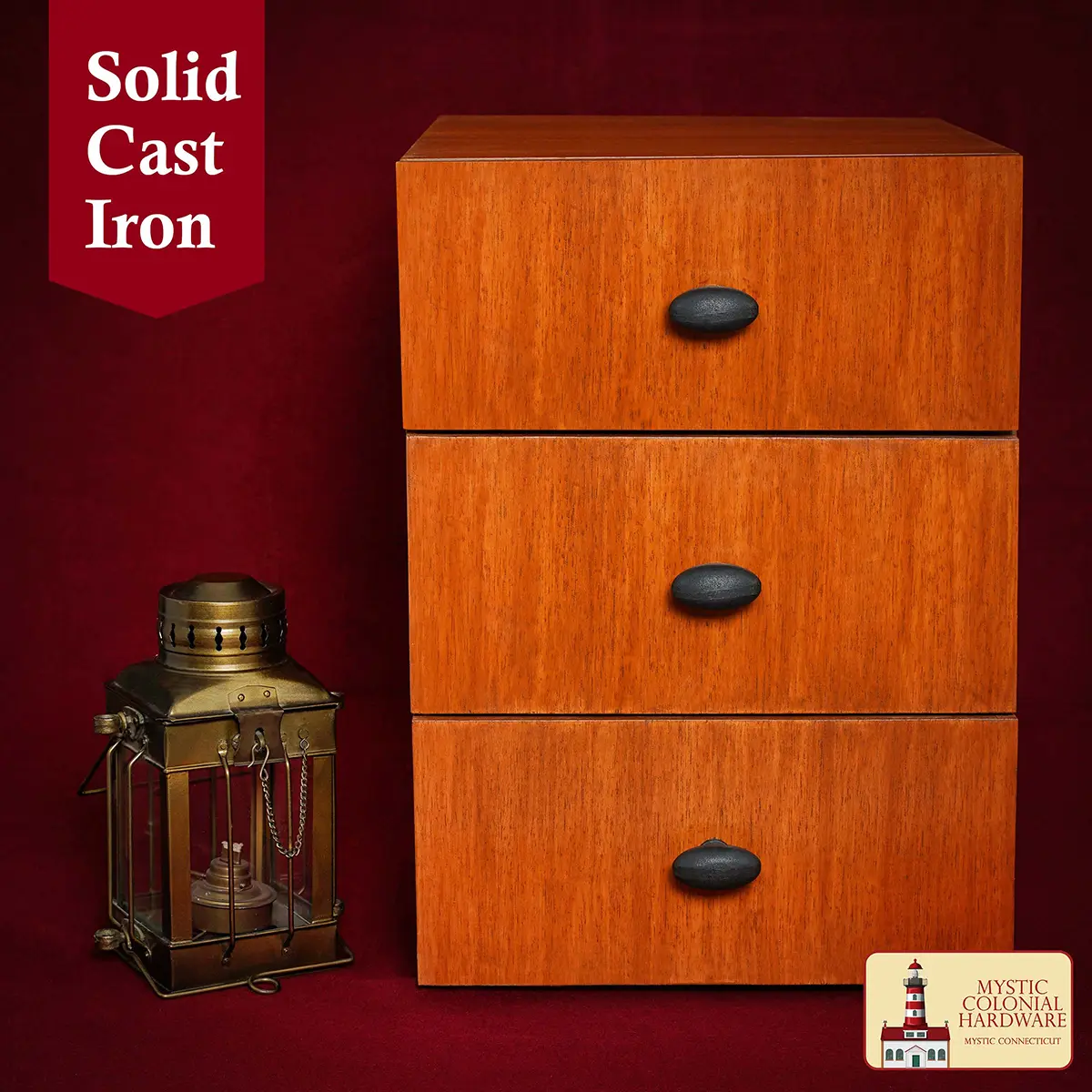 Each pull is hand-forged from high-quality iron, ensuring long-lasting strength while embracing the natural variations and textures that give handcrafted items their distinctive character. The smooth oval design fits comfortably in the hand and brings a refined yet rustic aesthetic to your drawers, cabinets, or chests.