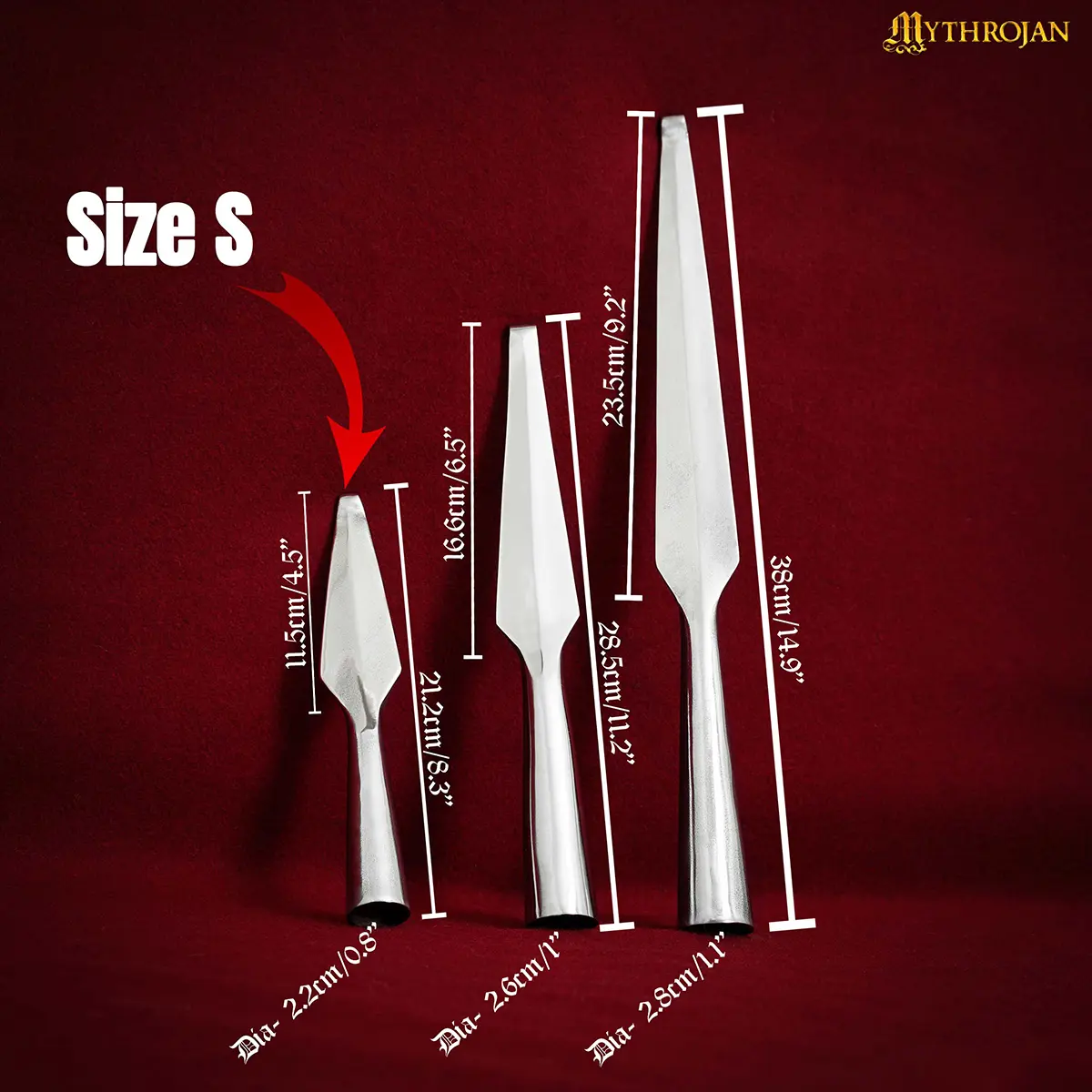 Each spearhead is individually hand-forged and polished, so slight variations in finish, size, and surface texture are normal. The wooden shaft is not included with the spearhead.