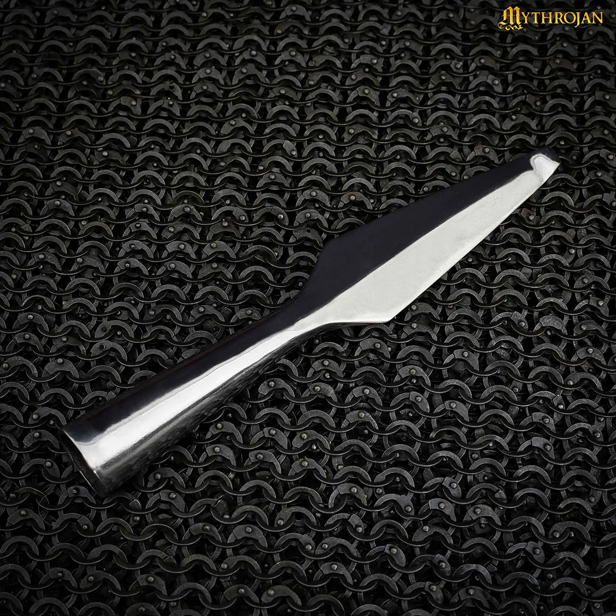 The mirror polished finish not only gives the spearhead a striking, gleaming appearance but also helps protect it against rust and wear. Designed specifically with LARP battles and combat in mind, it features a blunted tip, making it safe for SCA battles, LARP events, stage performances, and training scenarios.