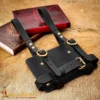 The belt loops, firmly riveted at the back, ensure the holder sits securely on your waist. It’s designed to carry your journal safely through medieval fairs, markets, or renaissance events while keeping your hands free.
