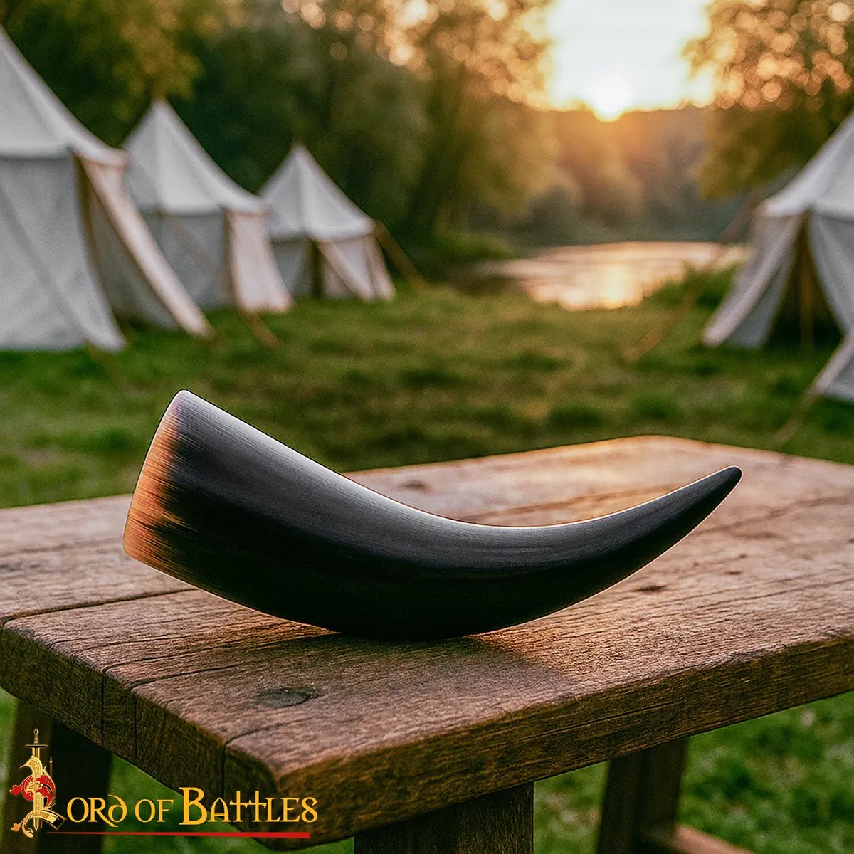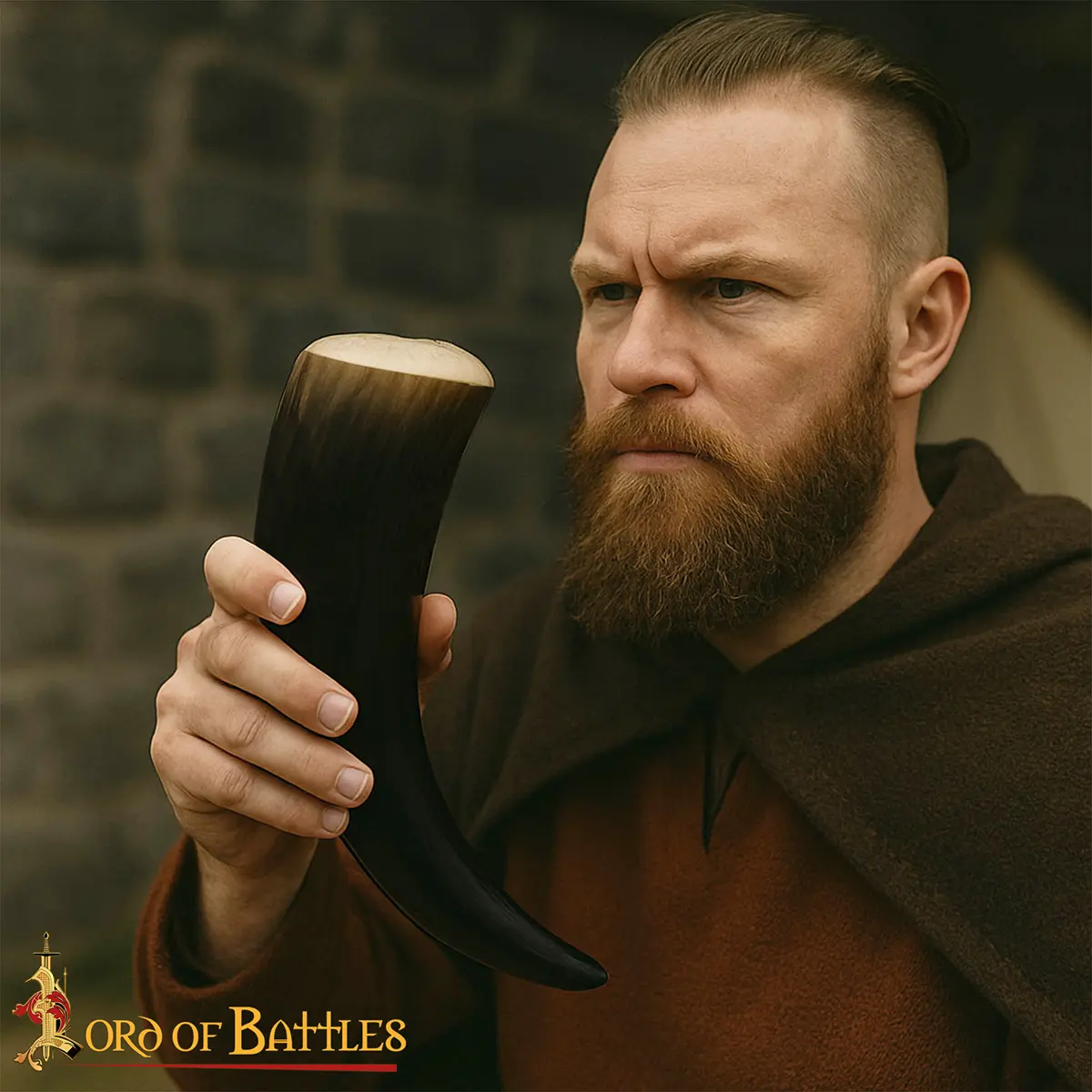 Each horn is crafted from ethically sourced ox horn, shaped into a curved form like used by Norse warriors centuries ago. Whether you’re savouring mead by the fire, pouring cold ale at a medieval gathering, or displaying it as a statement of your heritage, this horn brings an undeniable presence to any occasion.