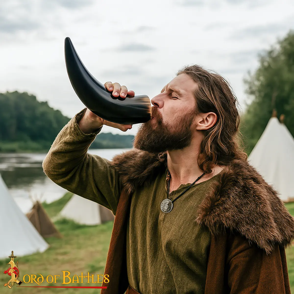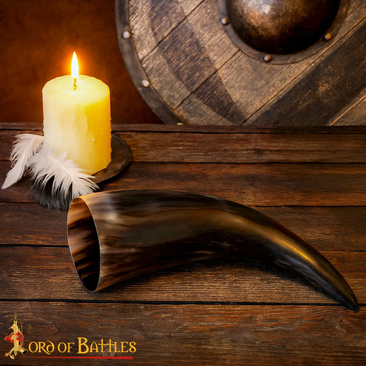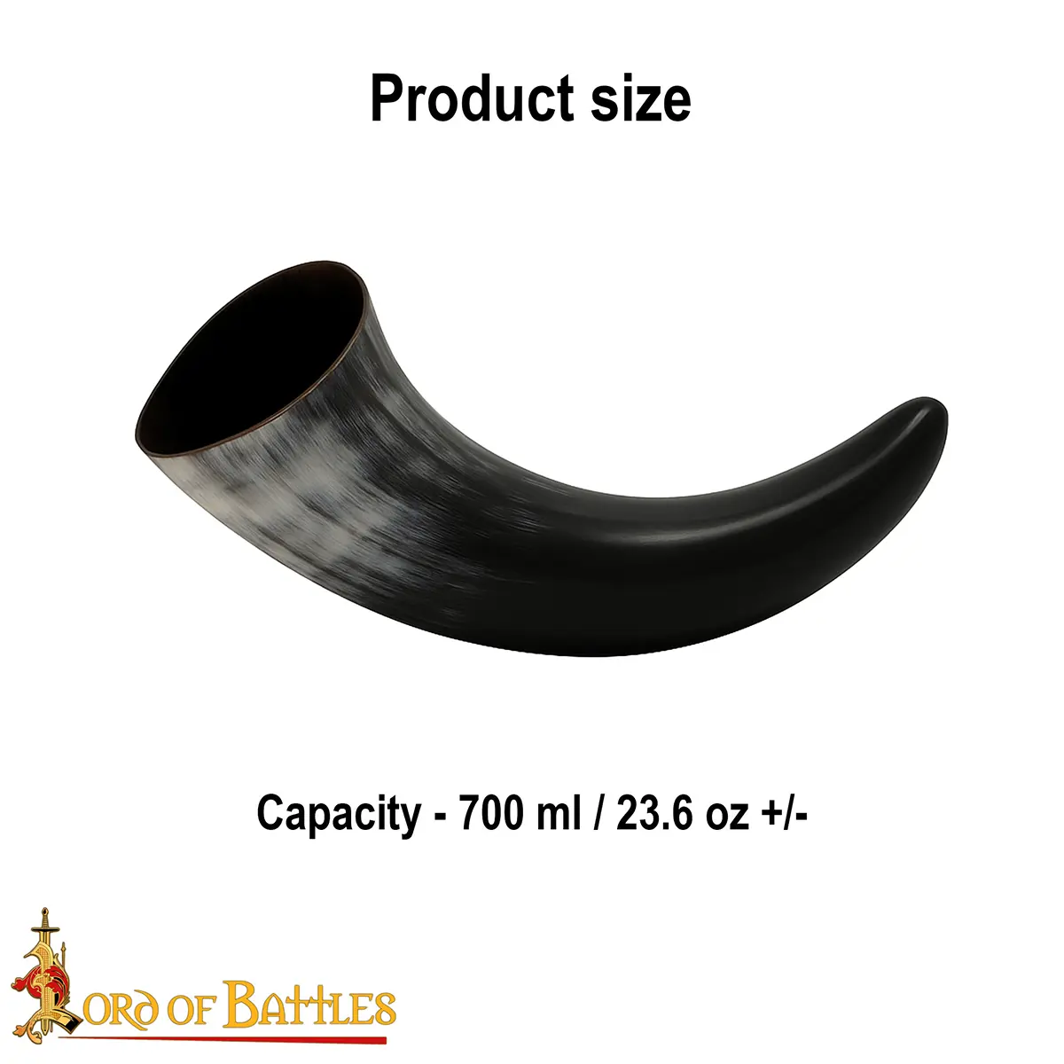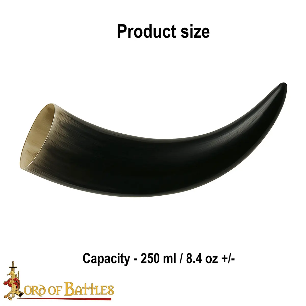 Note: Due to the natural nature of the Viking Drinking Horn, variations may be present in the horn’s finish , shape. The horn may also develop cracks with time as it ages.
