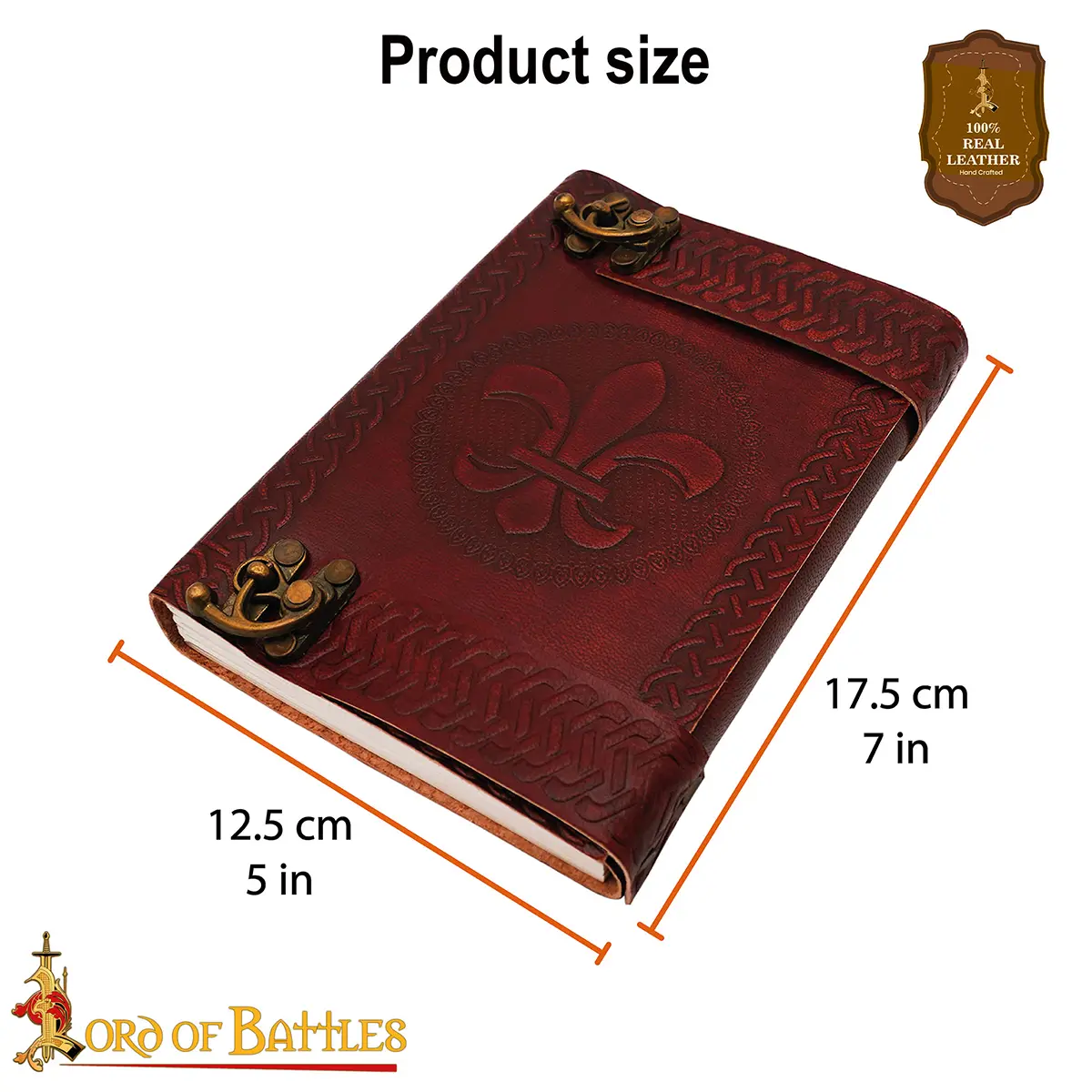 Unleash your imagination with this Handmade Leather Journal, a piece that feels like it’s been lifted straight from the pages of history. At its heart lies the proud Fleur-de-Lys embossing, a symbol of nobility, honor, and timeless elegance. Measuring a versatile 7 x 5 inches, it strikes the perfect balance, large enough for comfortable writing, yet compact enough to journey with you wherever inspiration calls.