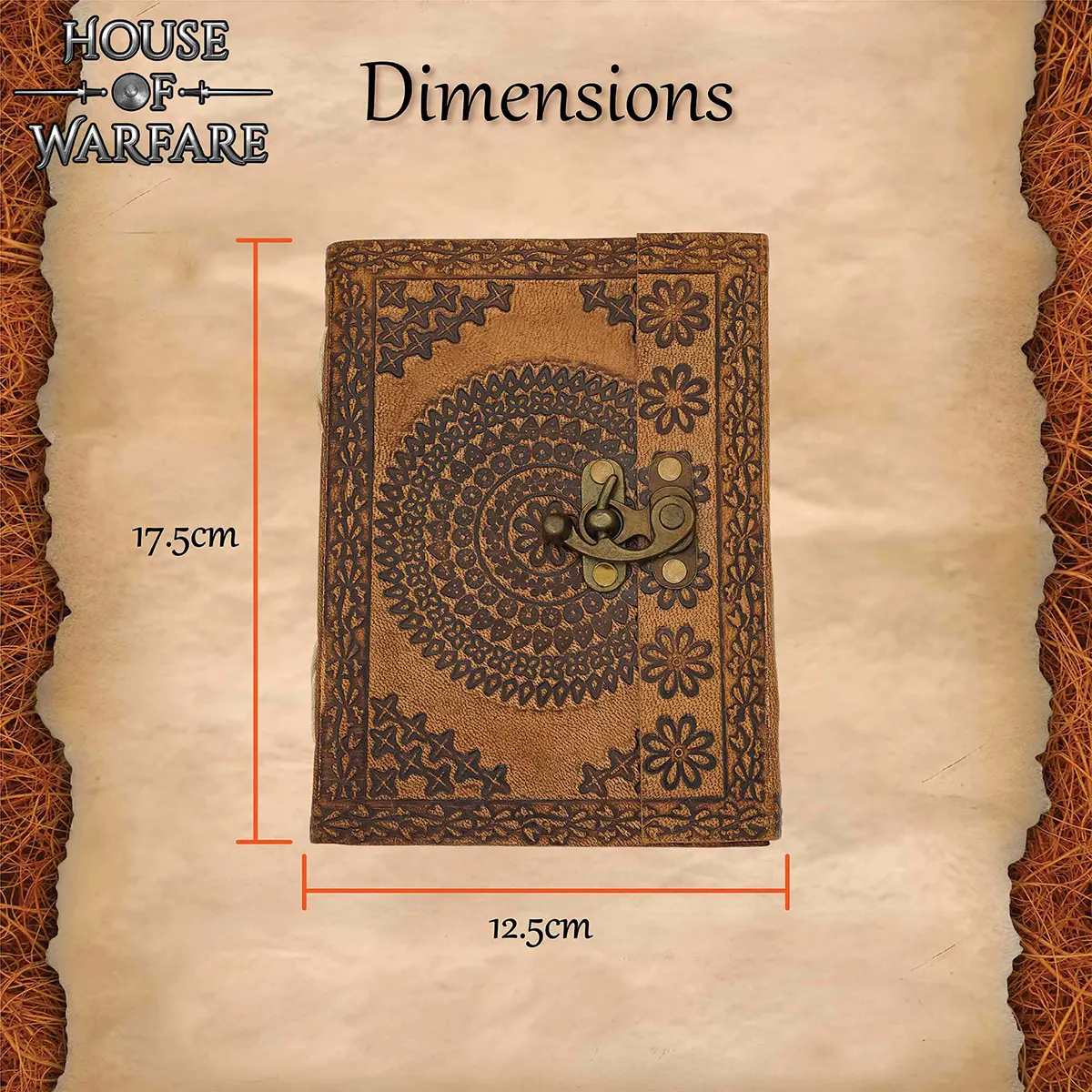 Handmade Leather Notebook: This is crafted from genuine leather to show the beauty of medieval writing books. With the size of 7 x 5 inches, it is compact and spacious enough for daily notes, sketches, journaling, or creative writing.