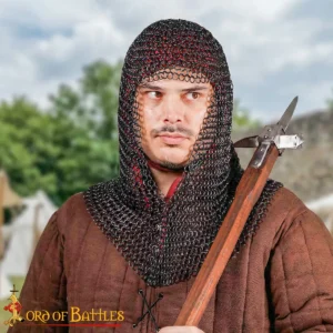 Each coif is hand-assembled, so slight variations in texture or ring alignment may occur. A thin protective oil layer is applied to the Black Finish before packing to prevent rust during transit.