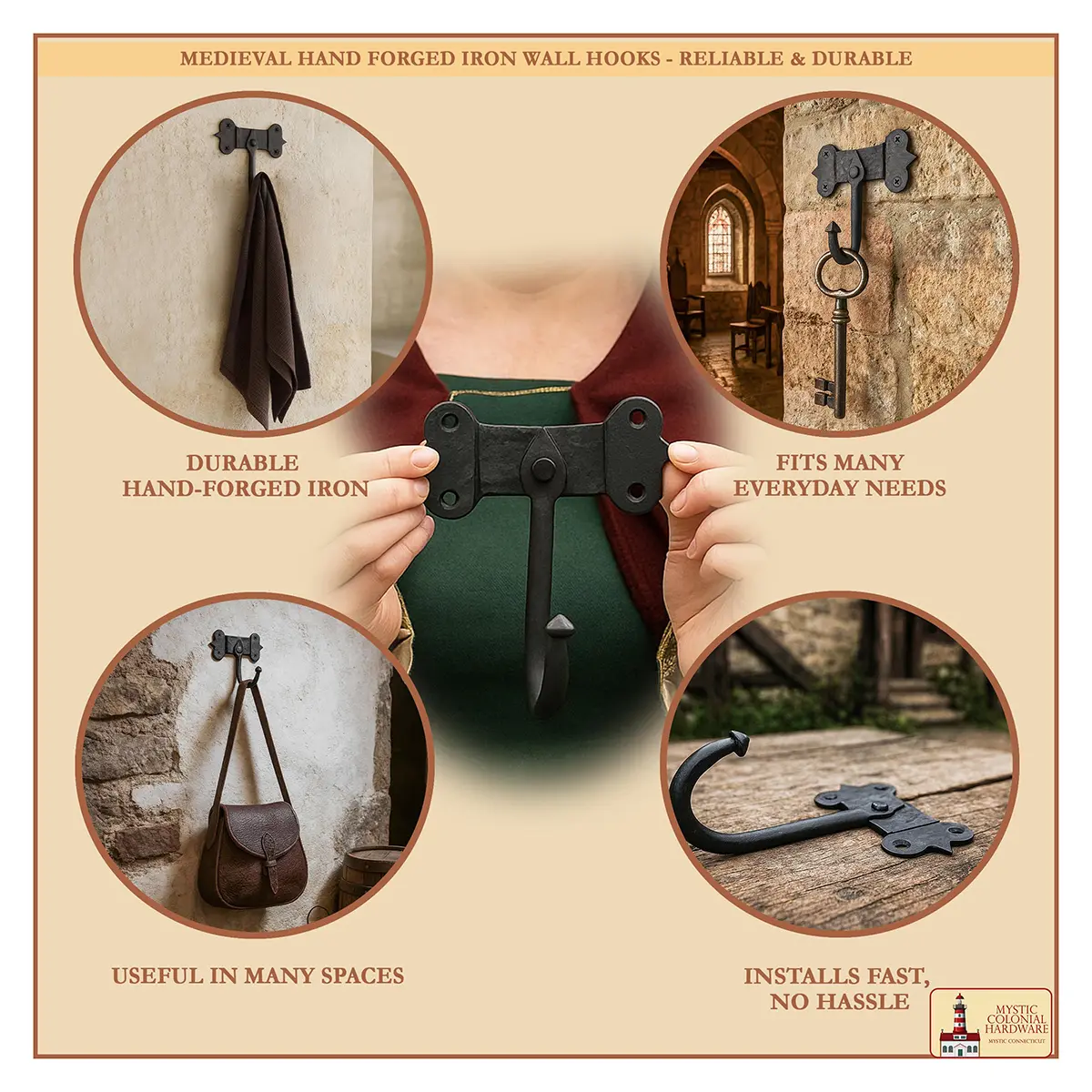 Bring strength, style, and historical charm into your home with this forged iron wall hook. Designed with a bold rustic look and a pointed end, it’s both a practical storage solution and a decorative accent that elevates any space.