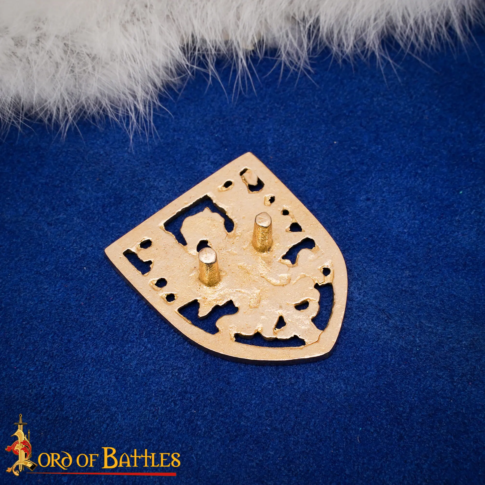 The back of each Belt Decoration has two brass pins and washers, for installation without falling off during wear. This fastening system makes it easy for the mounts to be applied to belts, armor panels, and pouches.