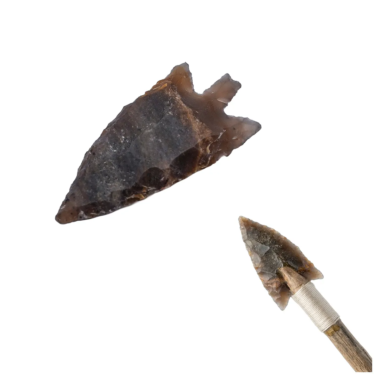 Each stone arrowhead is uniquely formed, featuring natural variations in texture, color, and pattern. The chipped edges and raw finish highlight the authenticity of the crafting process, ensuring that every flint arrowhead carries its own distinct character.
