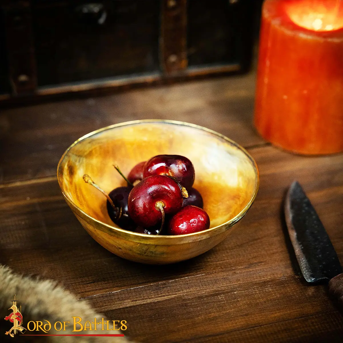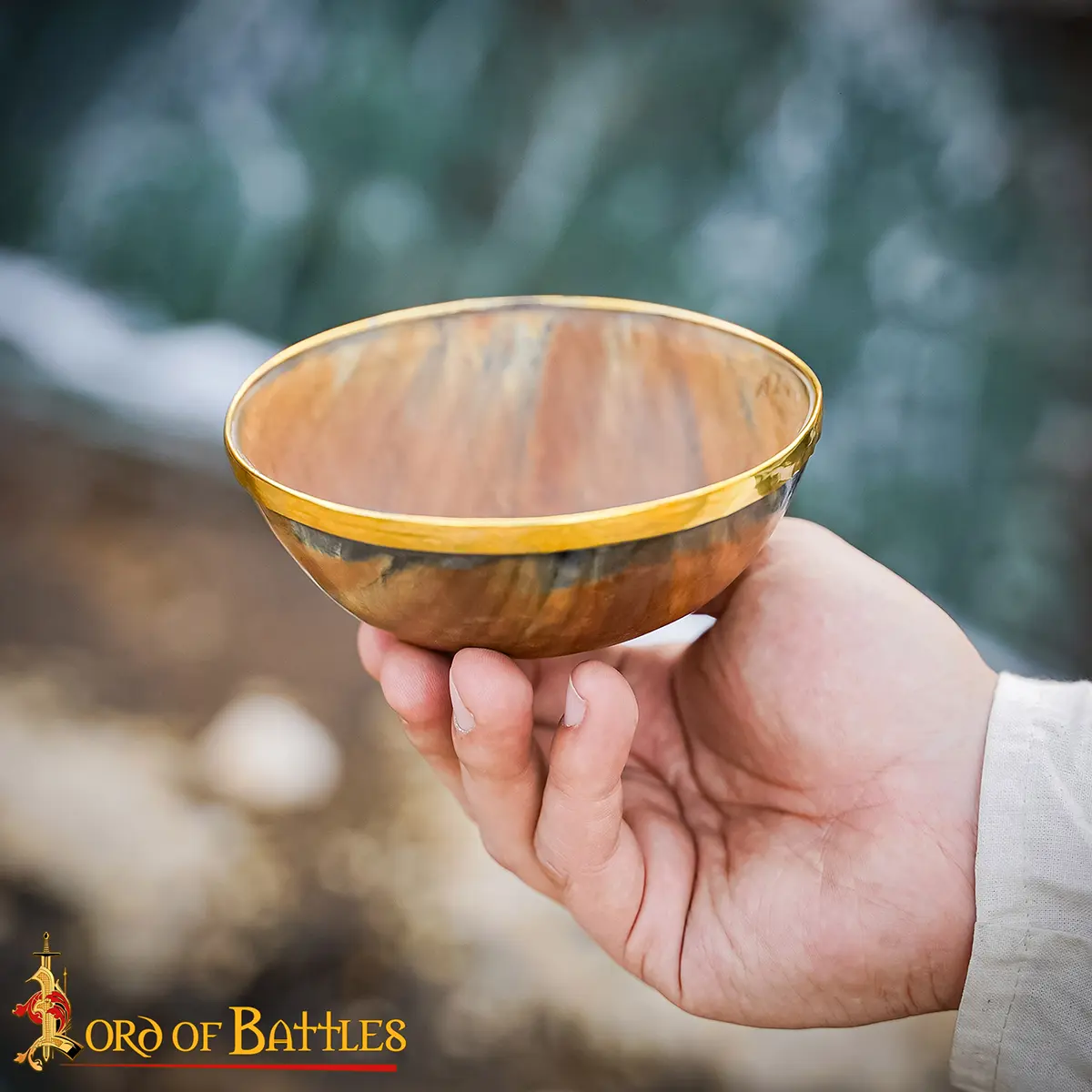 The Viking Banquet Horn Bowl with Pure Brass Rim Genuine Horn Accessory