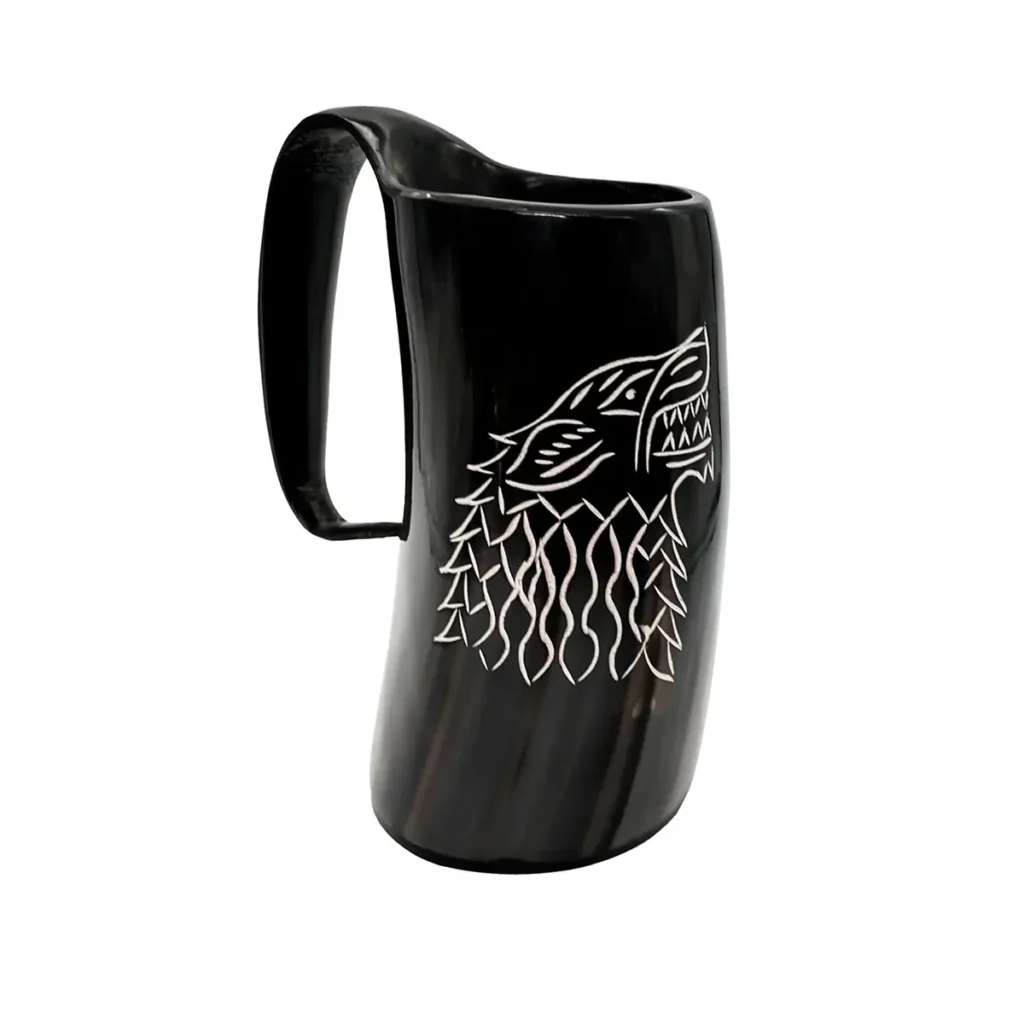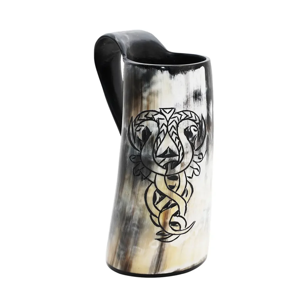 Since the small, weak drinking mugs won’t suffice your Viking appetite, we have handmade these horns to fit a jumbo capacity of approx. 750 ml. It is 0% leak locked and is suitable for cool liquids which have up to 20% alcohol content. Please avoid using dishwasher and hot liquids; before use, make sure to wash under running water. For a longer life span treat with bees’ wax after each use. Please note this is a natural product that decays with time and hence, cracks may come.