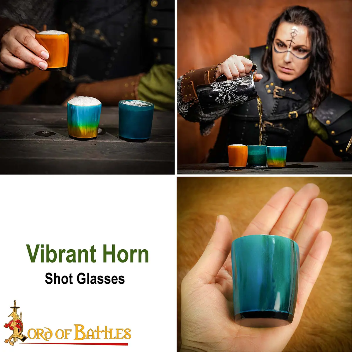 Medieval Horn Flamboyant Colorful Shot Glasses Handmade Authentic Ox Horn