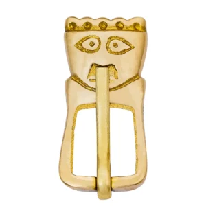 Inspired by archaeological finds from the 14th century, this Late Medieval Brass Buckle is a trusted reproduction of period buckles used between 1300 and 1400 CE. Hand crafted from pure solid brass, this buckle has a very unique engraved human-head motif just like the era’s symbolic designs, found on belts, purses and garments of medieval Europe.
