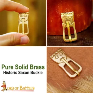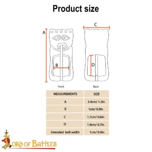 Each buckle is hand-crafted by skilled hands, making it both durable and lightweight. The small compact size helps in versatility for leather straps and accessories. Designed to fit a belt width up to 11 mm, it serves best for medieval themed projects, costume projects, or LARP kits.