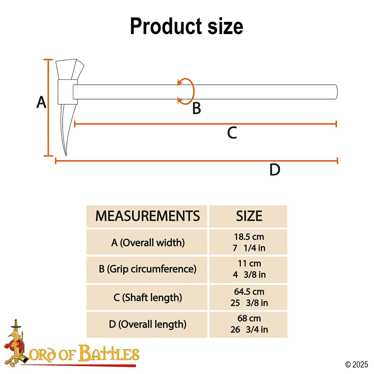This medieval war hammer is inspired by historical weapons used by knights and foot soldiers during the Middle Ages. Made for strength, balance, and visual authenticity, it combines solid materials with traditional craftsmanship.