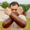 Medieval Leather Bracers with Elbow Protection – Arm Guards with Adjustable Lacing