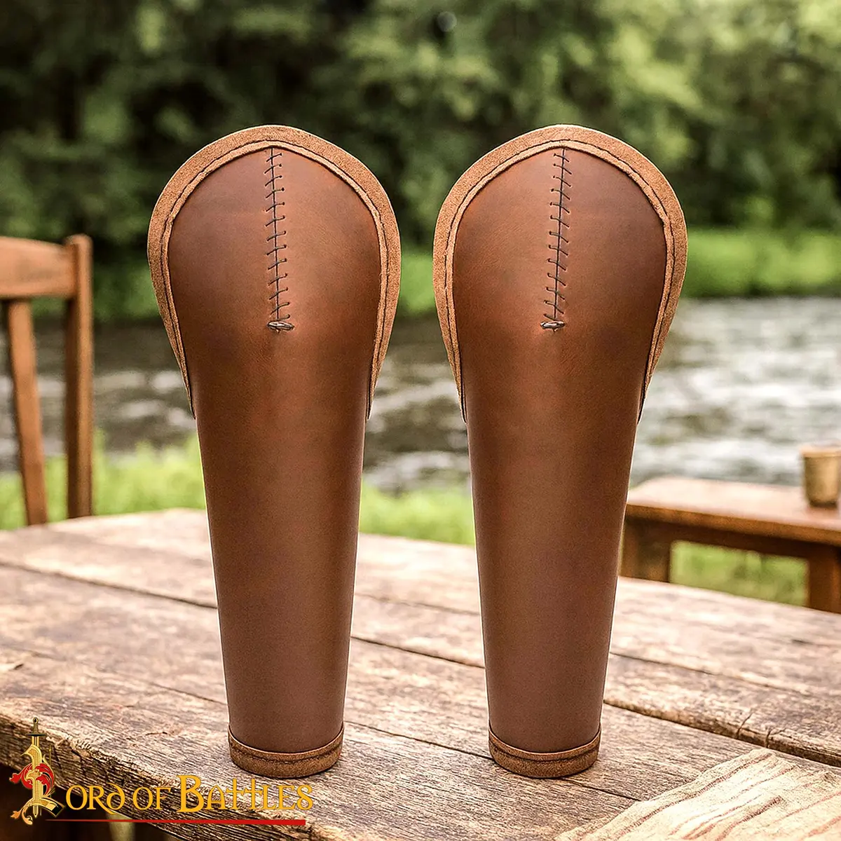 Channel the strength and resilience of medieval warriors with these Handcrafted Medieval Leather Bracers with Elbow Protection. Bracers were a vital part of historical armor, shielding the forearms and elbows from blows, bowstring snaps, and everyday wear in battle or training.