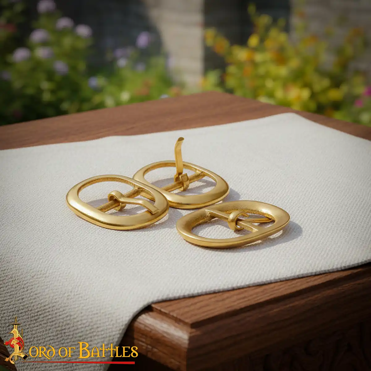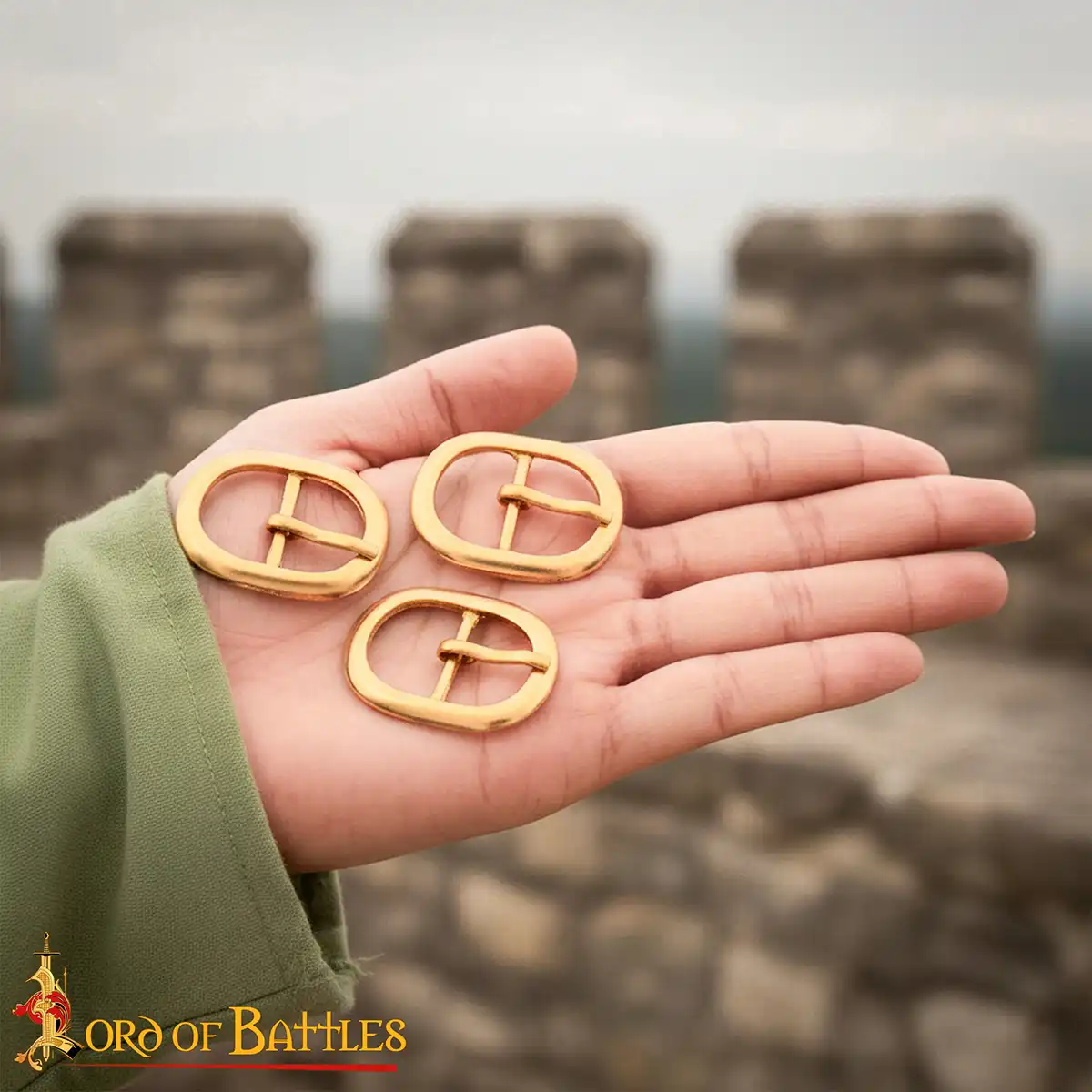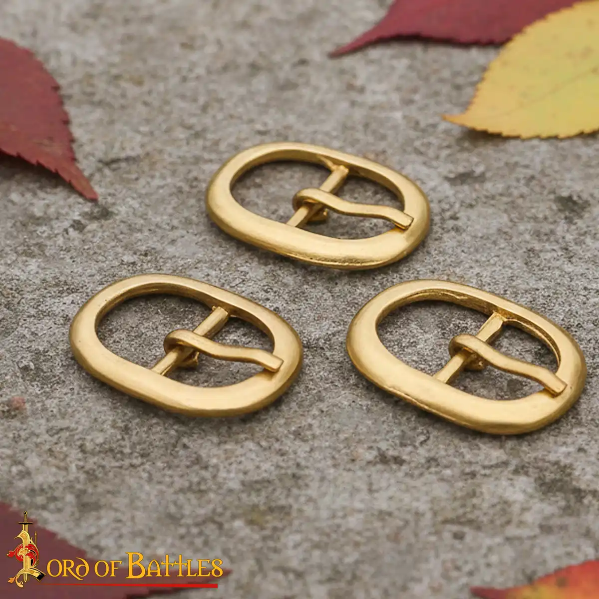 Medieval Oval Brass Buckle Set (Set of 3): Complete your kit with this set of leather craft buckles, made from solid brass and inspired by classic medieval design. Compact and durable, these buckles are reliable for fastening. Each buckle has a smooth oval profile with a central bar, like traditional medieval belt buckles commonly used for straps, footwear and small accessories. Their clean golden finish makes them suitable for both historical and fantasy applications.