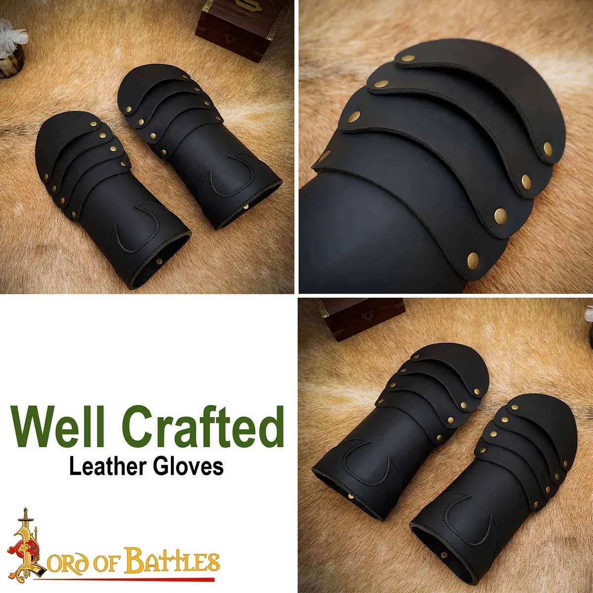 These leather mitten gloves are ideal for your next LARP or cosplay outfits or even for your knightly character from your favourite FANTASY UNIVERSE! So get these to add the missing flair to your character!